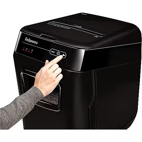 Description - AutoMax™ 200C Cross-Cut Shredder Automatic shredding for maximum productivity 200 sheet automatic and 10 sheet manual shredding capacities Auto Reverse stops and reverses paper if a jam occurs SilentShred™ offers ultra-quiet performance for shared workshpaces Sleep Mode feature shuts down the shredder after 2 minutes of inactivity Shreds documents into 4x38mm cross-cut particles (Security Level P-4)