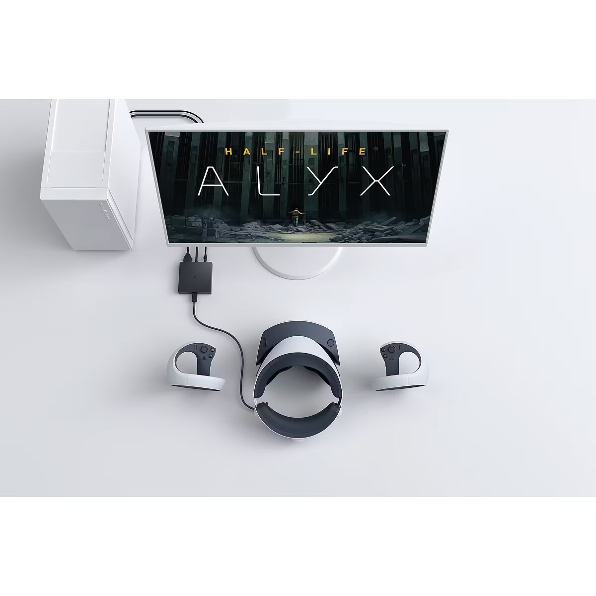 MediumDescription EN - PlayStation®VR2 PC Adapter allows you to expand your PlayStation VR2 gaming experience by connecting the VR headset to a Windows PC. Simply plug in the adapter, download the free PlayStation VR2 app and SteamVR™, and browse and play thousands of virtual reality games on Steam. Explore open-world multiplayer games, survival horrors, sports simulations, and much more.