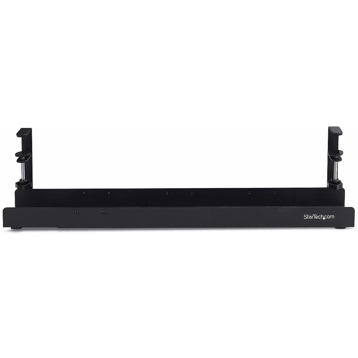 LongProductName - StarTech.com Under Desk Cable Management Tray, Length Adjustable, Clamp-On Installation, No Drilling Required, Black