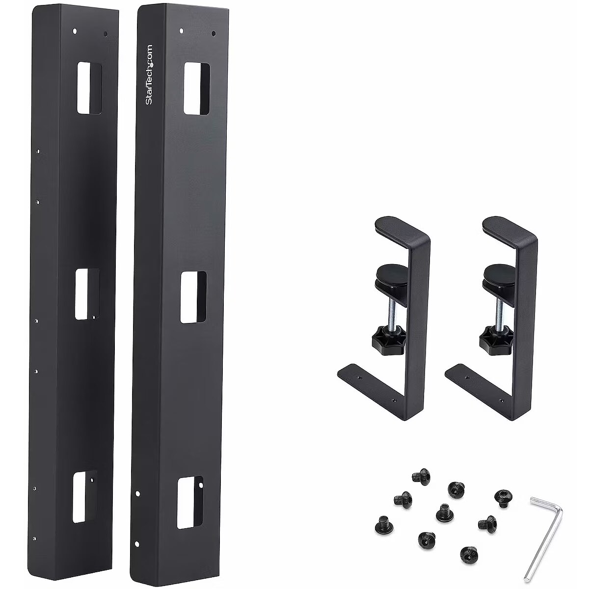 LongSummaryDescription - StarTech.com Under Desk Cable Management Tray, Length Adjustable Cable Organizer, Clamp-On Installation, No Drilling Required, Power Bar Holder, Black. Type: Cable tray, Purpose: Desk, Product colour: Black. Width: 105 mm, Height: 207 mm, Weight: 2.3 kg. Package width: 760 mm, Package depth: 125 mm, Package height: 60 mm. Quantity per pack: 1 pc(s), Number of clamps included: 2 pc(s). Master (outer) case width: 775 mm, Master (outer) case length: 275 mm, Master (outer) case height: 200 mm