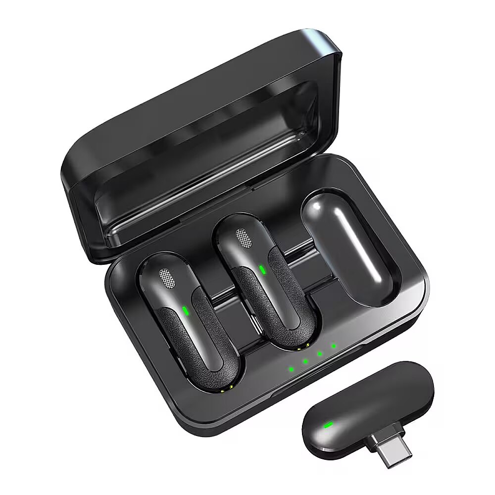 Description - Bezprzewodowe mikrofony (2 szt.) Technaxx TX-301 Dwa bezprzewodowe mikrofony dla najwyższej jakości dźwięku Inteligentna redukcja szumów zapewniająca czystość nagrań Praktyczny klips do zawieszenia mikrofonów dla wygody użytkowania Etui ładujące przedłużające czas działania i zapewniające łatwe przechowywanie Plug and Play działa bez aplikacji, natychmiastowe połączenie przez USB-C Doskonałe Uchwycenie Dźwięku