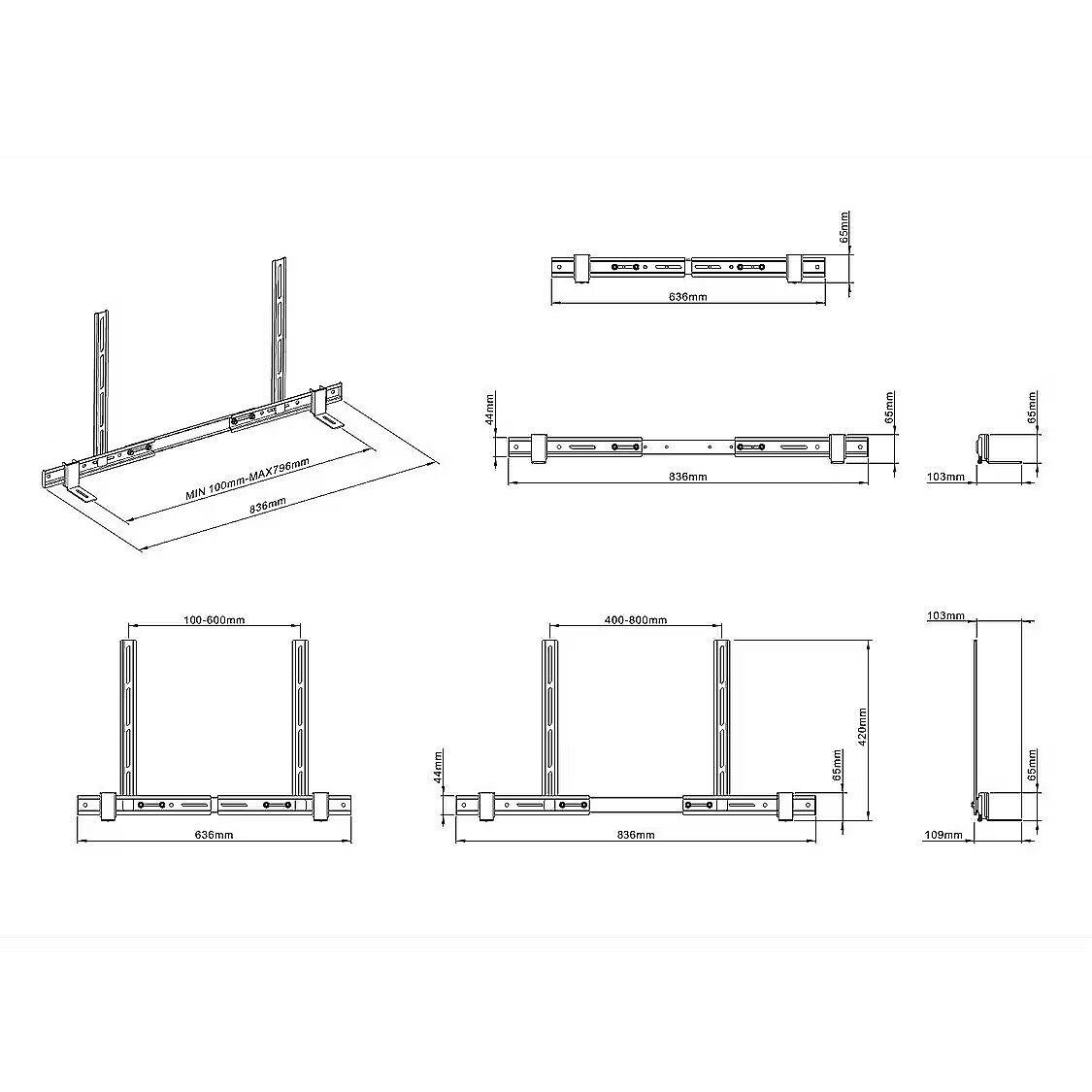 LongSummaryDescription - Multibrackets M Universal Soundbar Mount 55"-110". Placement: TV bracket, Maximum weight capacity: 10 kg, Product colour: Black. Height (max): 42 cm, Width: 836 mm, Width adjustment range: 636 - 836 mm. Package weight: 3 kg, Package type: Box. Products per shipping (inner) case: 1 pc(s)