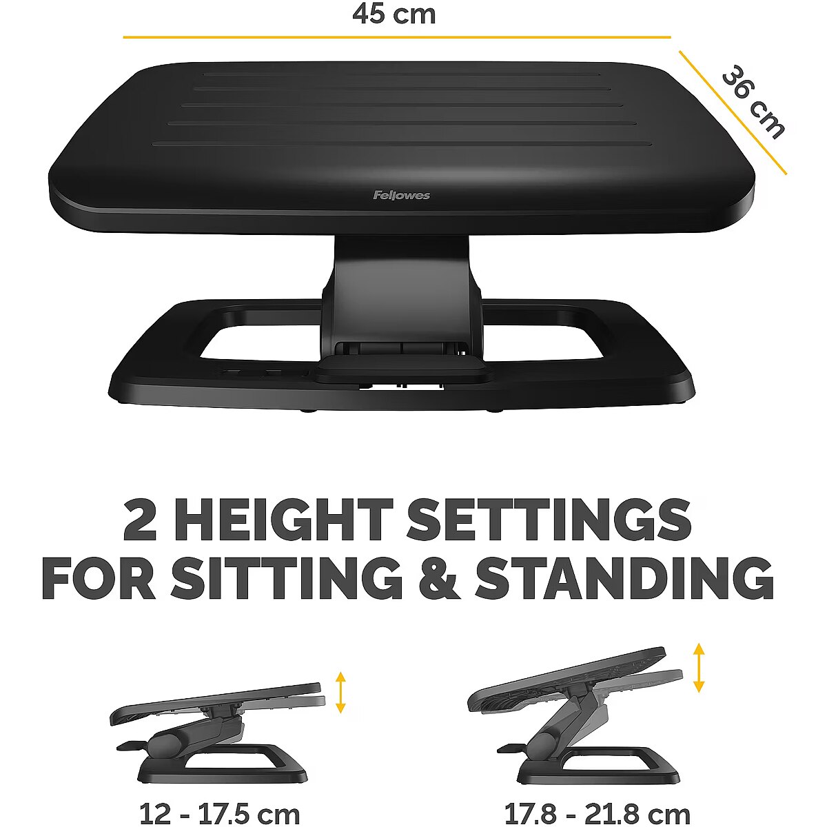 LongProductName - Fellowes Foot Rest Under Desk - Hana LT Foot Support Ergonomic Foot Rest - Foot Rest Stool for Office & Home Use - Black