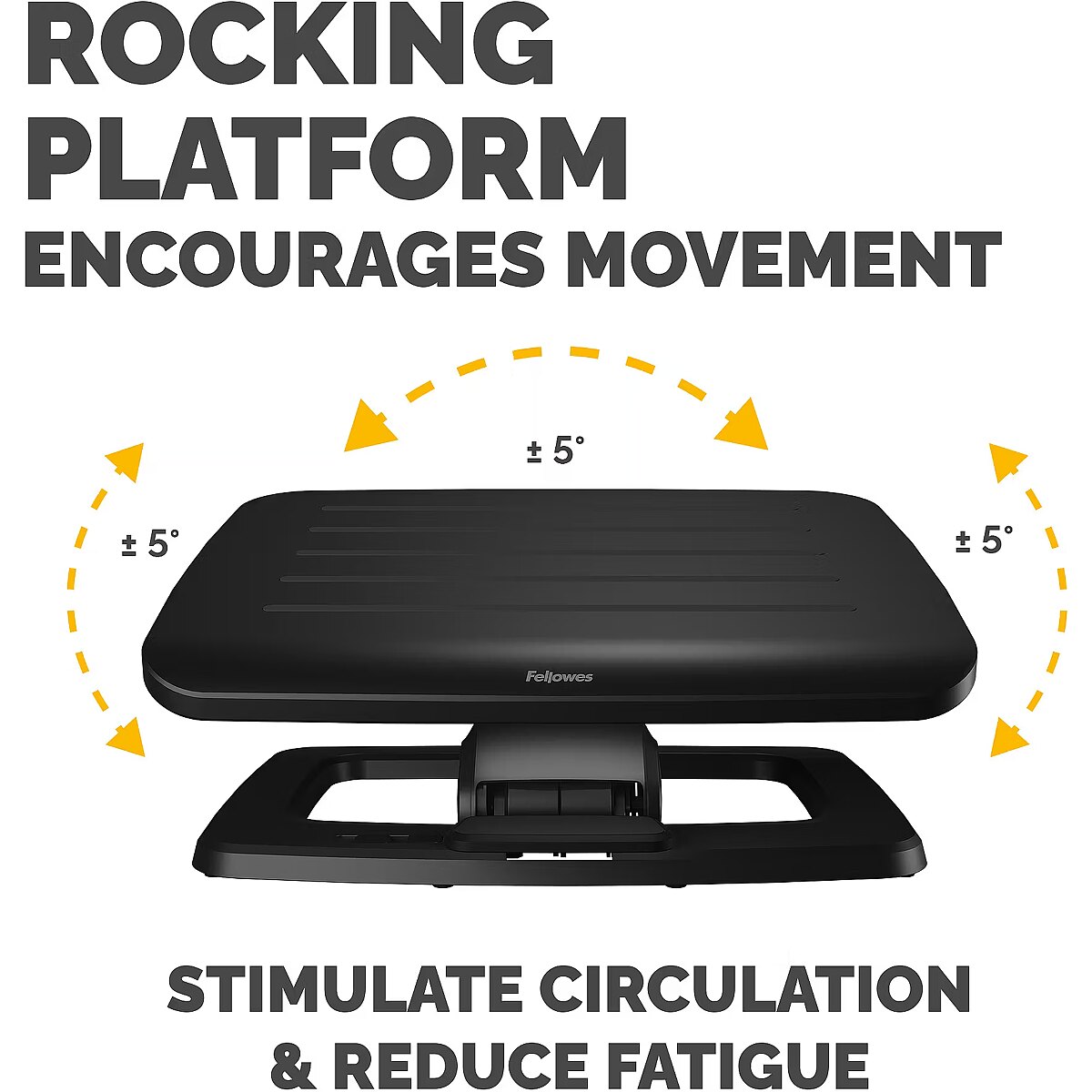 Description - Support your feet and encourage motion to improve circulation and back comfort. Promotes motion with the active movement feature which allows for flexible platform movements. Light or heavy tension setting to adjust the ease of movement. Two height settings for sitting and standing. Change height positions with effortless foot adjustment. Stylish design, available in black or white.
