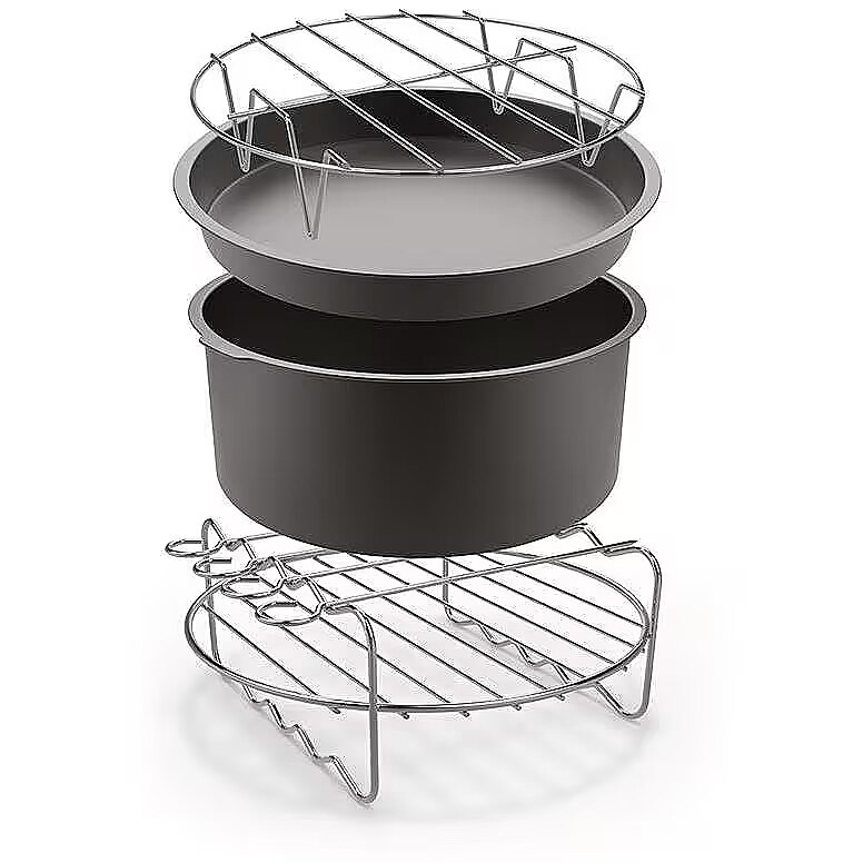 MediumDescription EN - Add a cooking level to your Easy Fry XXL! Add a cooking level to your Easy Fry XXL with a cake barrel, a pizza pan, a skewers rack and a metal holder. These 4 accessories (8" inches) are compatible with Easy Fry XXL EY701D & EZ701D, ensuring healthy cooking the whole family will enjoy - tasty, flavorful results using hot air. • Less oil and less fat