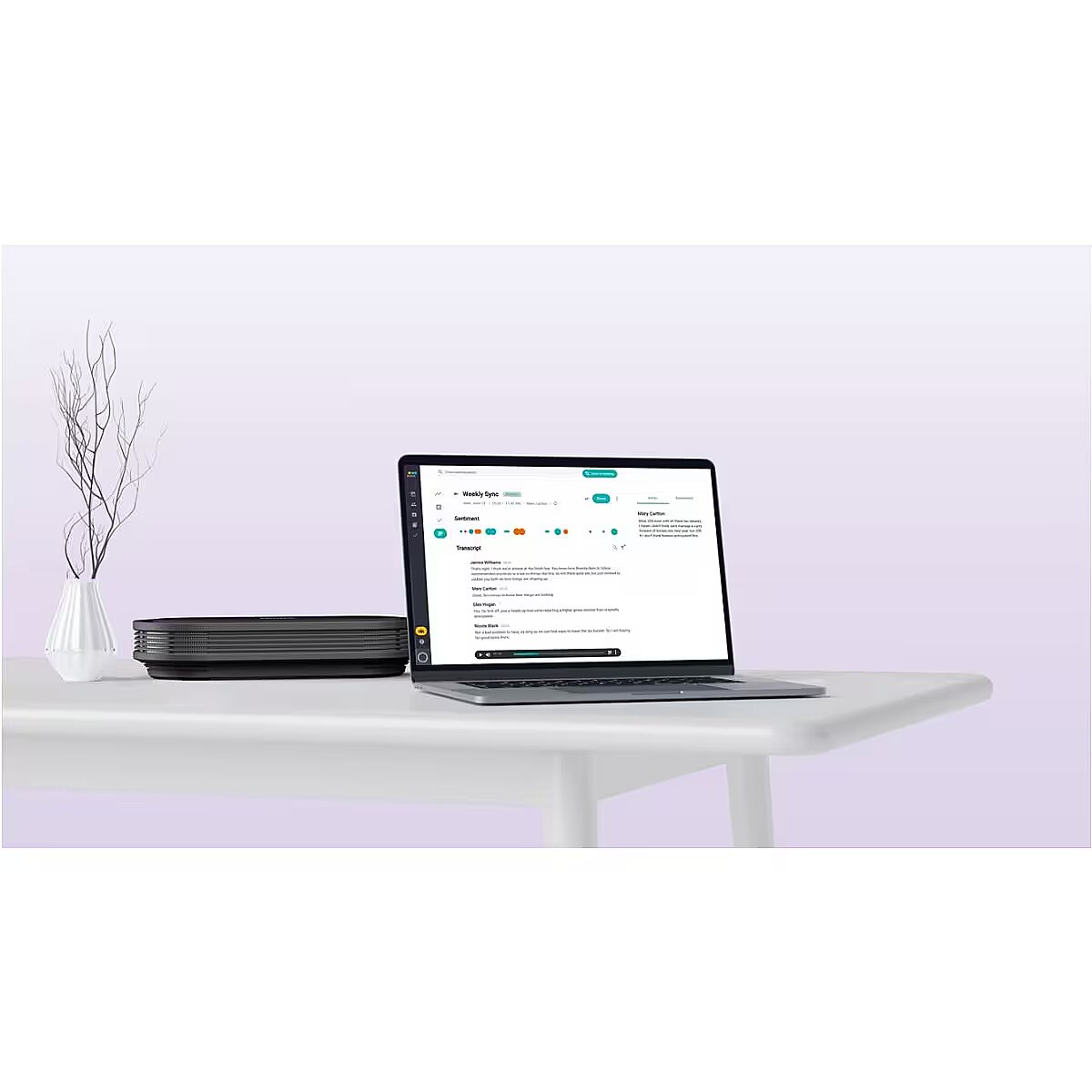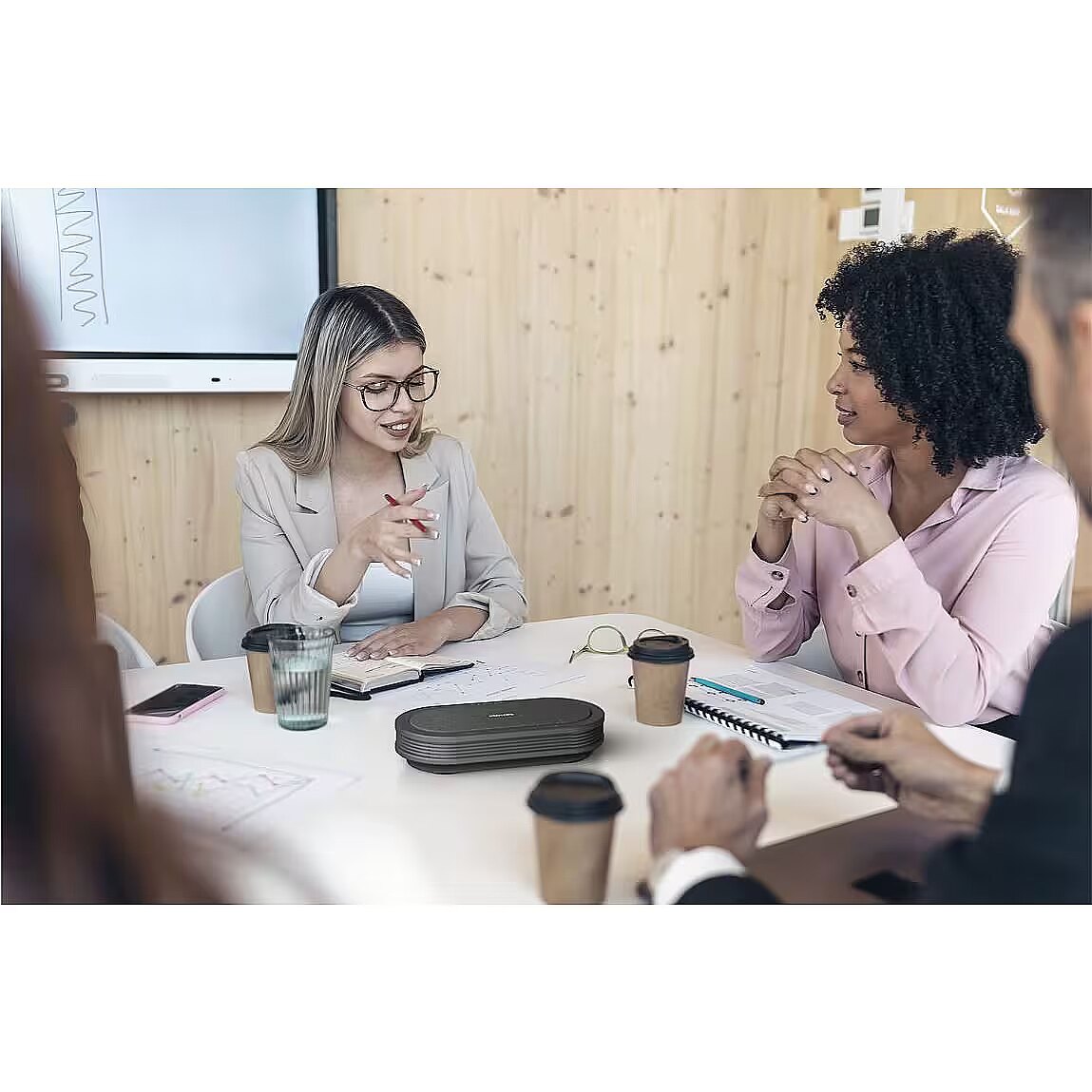 LongDesc - The Philips SmartMeeting Conference Microphone and Sembly Meeting Assistant take part in meetings with you as your dedicated note takers. The microphone’s smart speech-enhancing and noise-filtering technology ensures clear and natural sounding calls. Sembly creates automatic transcripts, summaries and highlights action points and to dos for you. The solution helps you find out who said what easily and quickly after every meeting, even if you could not attend.Automatic minute taking to help you focus on your meetingsSembly will join any call it is invited to, introduce itself, and record the call. It can even attend a call when you’re not there! You can focus on the conversation and not get distracted by having to take notes.Instant meeting summary so you know the outcome of every meeting at one glanceShortly after a call, the transcript of the conversation will appear in the Sembly app, which you can read, search, and share as needed.Automated meeting action points for saving timeSembly’s smart AI tracks actions, issues, requirements and more to help you zoom-in on key items, in case you missed something during your call or just want to confirm specific details from the discussion.Voice ID for clear speaker separationSembly offers advanced features such as the revolutionary VoiceID algorithm, which identify speakers in meetings and is able to separate the transcripts per person to see who said what. Each speaker is assigned their own virtual "voice fingerprint".Sembly works with all major platforms such as Microsoft Teams, Google Meet and ZoomSembly connects with all major platforms, such as Microsoft Teams, Google Meet and Zoom. Sembly automatically syncs with your Google or Outlook calendar. You can also invite Sembly to an unscheduled call at any time.360° recording with high-quality 6-array microphone for clear meeting recordingsThe microphone comes with a noise-cancelling 6-array microphone to capture a radius of 6 meters and up to 12 speakers around the table. The smart speech-enhancing and noise-filtering technology ensures clear and natural sounding calls.High-quality loudspeaker for understanding voices clearlySmartMeeting solution comes with a high-quality loudspeaker which makes sure you can hear and understand every word which has been said by others in the meeting.Plug-and play connectivity via Bluetooth or USB for easy setupStart your calls instantly thanks to simple plug-and-play connectivity to your laptop or smartphone, using either USB or Bluetooth.Powerful long-lasting battery for up to 10 hours of useThe high-capacity lithium battery makes sure your are always ready for your next conference call, lasting for up to 10 hours.