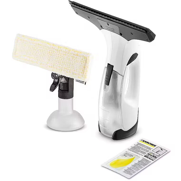 Description - Window vac WV 1 Plus D500 With the WV 1 Plus D500 Window Vac and the spray bottle with microfibre wiping cloth, you can clean your windows effortlessly and three times faster than before, with streak-free results. The WV 1 Plus D500 Window Vac from Kärcher ensures streak-free, clean windows, and also saves lots of time and effort. The intelligent combination of spray bottle and wiper guarantees extremely effective cleaning. The handy device then has no trouble vacuuming away the water from the window every time you use it – with no dripping dirty water and no streaks. When compared with conventional methods, manual cleaning is noticeably easier and three times faster than before. The convenient battery operation and the compact design guarantee maximum flexibility when cleaning all of your smooth household surfaces. Try it out and see for yourself!