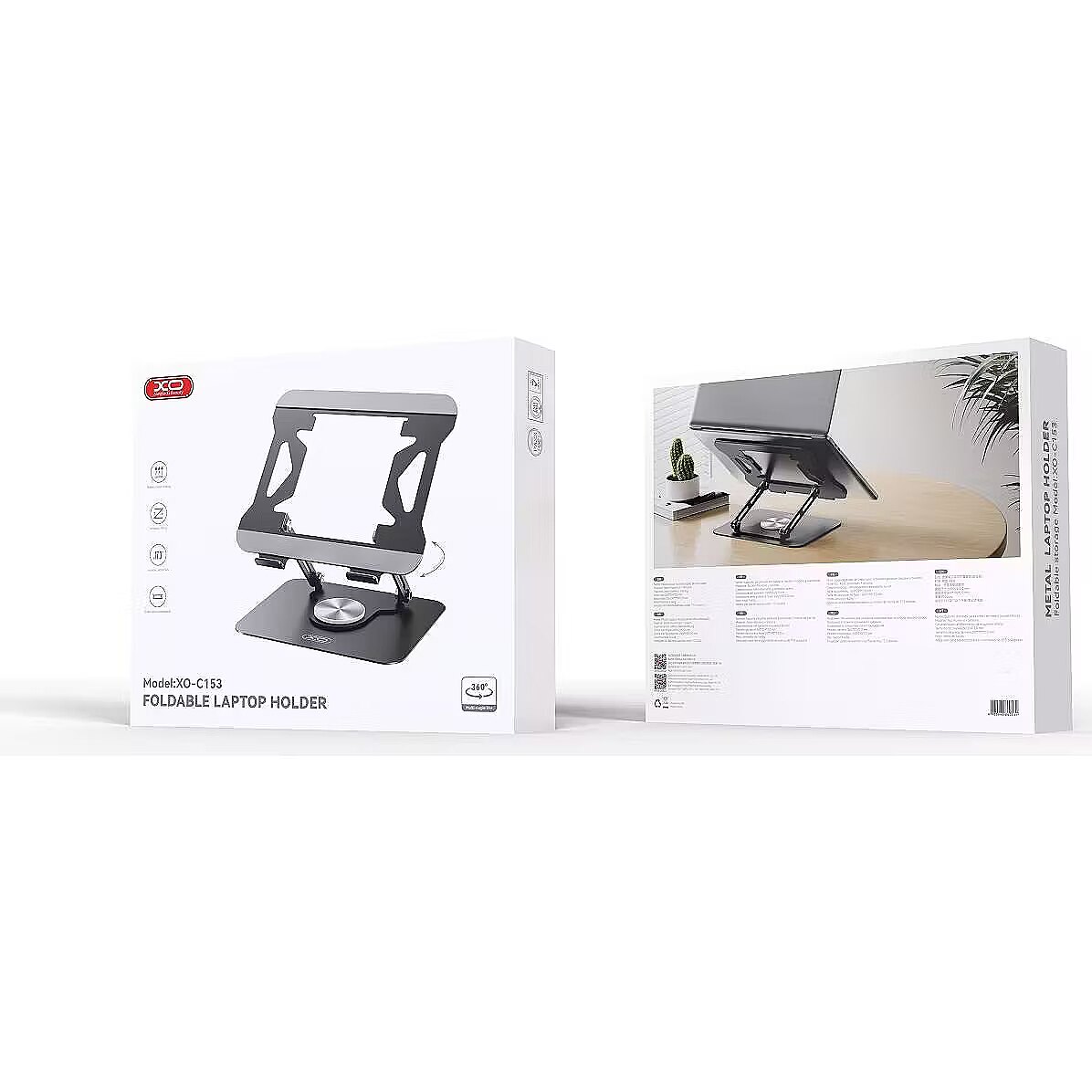 description_en - The XO C153 laptop stand is the perfect solution for creating an ergonomic and functional workplace. The adjustable height and angle of inclination and 360° rotatable design allow you to change the position of the laptop screen according to individual needs, increasing the comfort of work and reducing the risk of neck and back pain. The stand compatible with up to 17.3" devices. The stand is made of durable metal for reliable stability. Silicone pads prevent accidental sliding of the device. The stand can be easily folded and carried to be ready for use at home, in the office or on the go. Laptop and tablet stand with an adjustable height Wide compatibility with up to 17.3" devices Ventilation for better air circulation and optimal cooling Silicone pads to prevent the laptop from slipping Foldable design for easy portability Ideal for use in the office, at home, when traveling, and for distance learning and work Elegant and modern design, suitable for any interior
