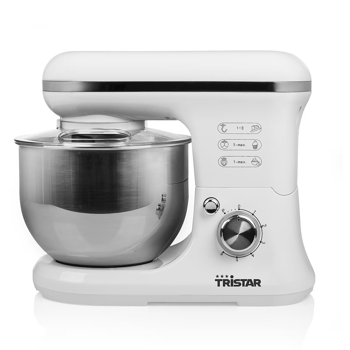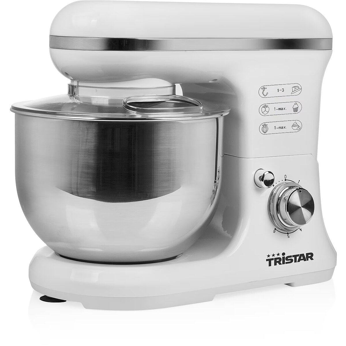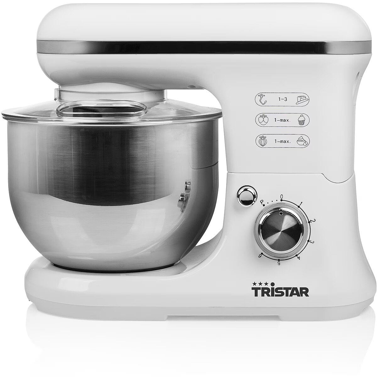 LongDesc - Bring some extra help into your kitchen with the Tristar MX-4817 Kitchen Machine. This multifunctional stand mixer comes equipped with three attachments and can beat, mix and knead. The large 5 litre mixing bowl makes this the ideal kitchen machine for bakers of all experience levelsPlanetary mixingThe Tristar Stand Mixer uses a planetary mixing motion. This means that all ingredients are thoroughly mixed as they are constantly pushed towards the middle of the bowl. In this way, you get the best incorporated batter or dough. The included egg whisk is perfect for whipping up cream. To make a bread dough, you can use the dough hook and the flat beater is perfect for cake batters.Durable, high quality materialsThe Kitchen Machine from Tristar is built to last. The high quality plastic housing is easy to keep clean and the stainless steel mixing bowl is dishwasher proof. Next to this, the gears are made of metal to ensure powerful mixing. You can easily select one of the six speed setting with the dial on the front.Safe to useWhen mixing you often splash around flour or other ingredients. This will be no longer be an issue when using the transparent splash guard. And, if you want to add some extra ingredients later, you can do so through the opening in the splash guard. The anti-slip feet ensure the stand mixer remains in place.What’s in the box:Tristar Kitchen Machine, egg whisk, dough hook, flat beater, transparent splash guard, instruction manual
