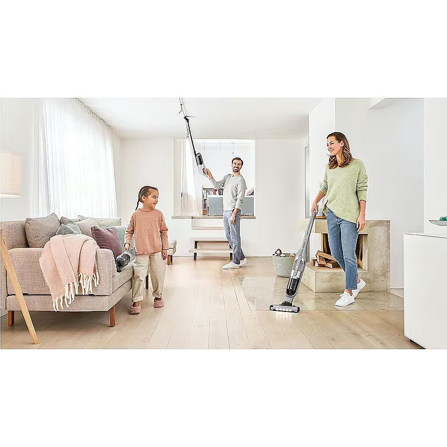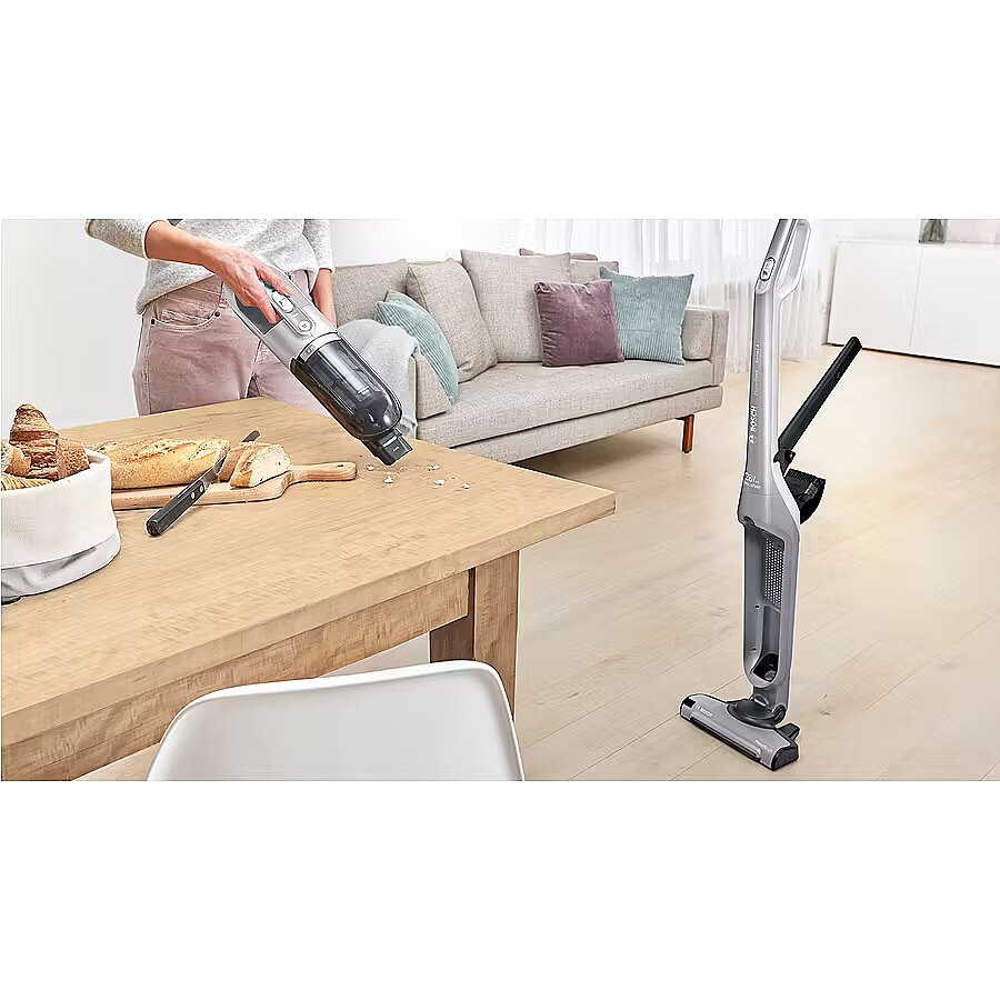 LongSummaryDescription - Bosch Serie 4 BBH3K2801. Product type: 2-in-1 stick vacuum, Dust container type: Bagless, Product colour: Silver. Cleaning type: Dry, Dirt separating method: Filtering. Power source: Battery, Battery technology: Lithium-Ion (Li-Ion), Runtime: 55 min. Width: 265 mm, Depth: 180 mm, Height: 1150 mm