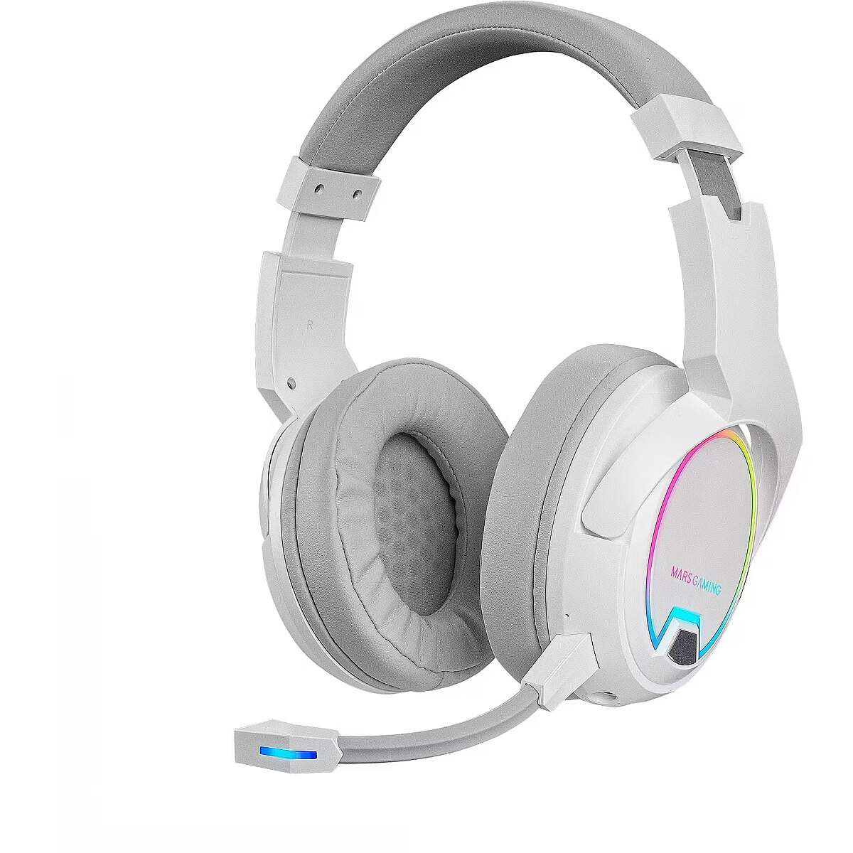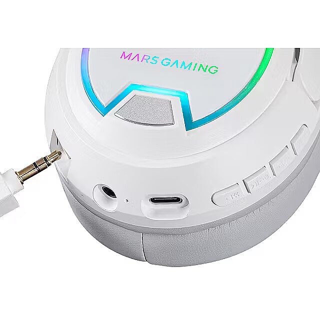 ShortSummaryDescription - Mars Gaming MHW-100 White Wireless Headset ARGB Flow Removable ENC Microphone Ultra-lightweight Active ENC + Passive Noise Cancellation Universal Compatibility, Wired & Wireless, Gaming, 18 - 21000 Hz, 341 g, Headset, White