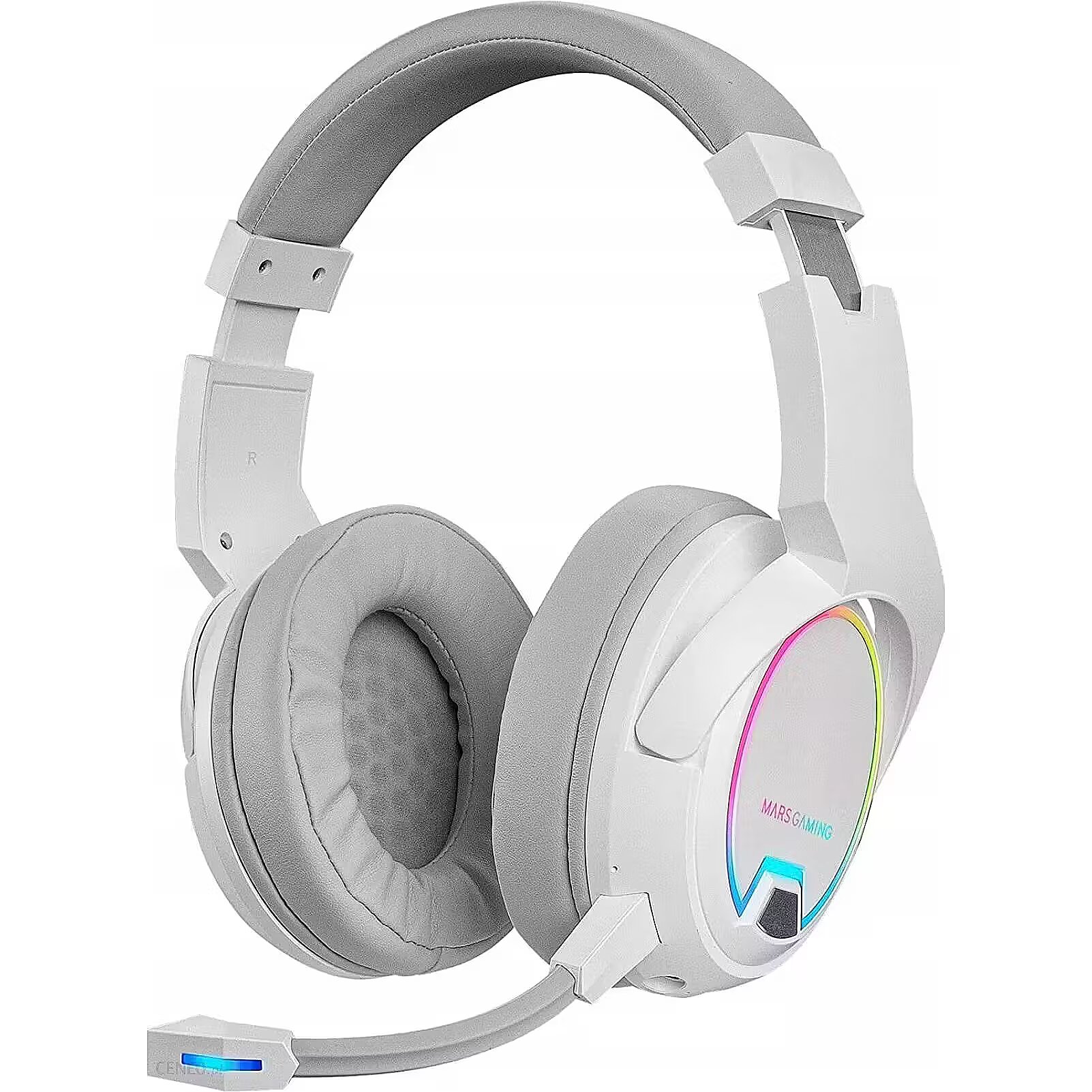 LongProductName - Mars Gaming MHW-100 White Wireless Headset ARGB Flow Removable ENC Microphone Ultra-lightweight Active ENC + Passive Noise Cancellation Universal Compatibility