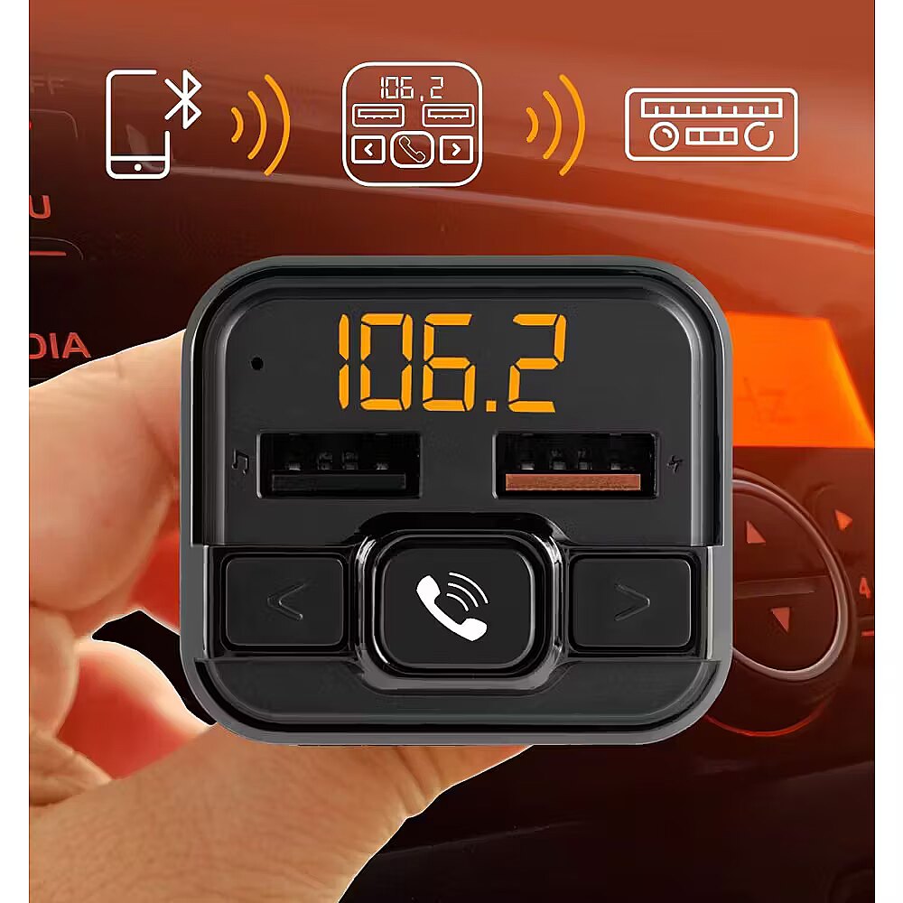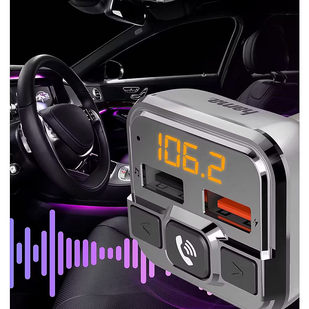 FM-Transmitter umożliwia bezprzewodowe przesyłanie sygnału audio z urządzeń Bluetooth, takich jak smartfony czy tablety, bezpośrednio do dowolnego radia samochodowego. Dzięki temu rozwiązaniu możesz słuchać ulubionej muzyki lub podcastów bez konieczności korzystania z przewodowych połączeń. Wbudowany zestaw głośnomówiący dla bezpiecznej jazdy