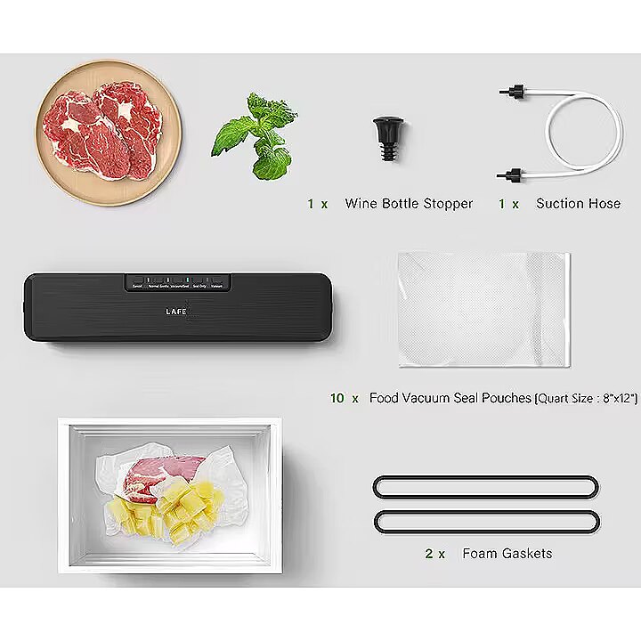 Description - Profesjonalna zgrzewarka próżniowa do żywności, która umożliwia szybkie, higieniczne i skuteczne pakowanie produktów w warunkach domowych. Idealna dla osób ceniących świeżość, porządek i oszczędność w kuchni. Wydajność i parametry techniczne Zgrzewarka zasilana jest prądem o napięciu 220240 V (50/60 Hz) i dysponuje mocą 250 W, co zapewnia szybkie nagrzewanie i skuteczne działanie. Wbudowana pompa próżniowa o wydajności 6 litrów na minutę pozwala na efektywne odsysanie powietrza z opakowań, co znacząco wydłuża trwałość żywności. Tryby pracy - dopasowane do Twoich potrzeb Urządzenie oferuje aż cztery tryby pracy, które można dopasować do rodzaju pakowanego produktu: Tryb Normal to domyślny, uniwersalny tryb odsysania powietrza i zgrzewania, idealny dla większości produktów spożywczych. Tryb Gentle (delikatny) przeznaczony jest do pakowania bardziej wrażliwych, kruchych produktów - takich jak pieczywo, owoce czy miękkie warzywa - bez ryzyka ich zgniecenia. Tryb Vacuum & Seal umożliwia automatyczne odessanie powietrza oraz natychmiastowe zgrzanie folii, co sprawia, że proces pakowania jest szybki i bezobsługowy. Tryb Seal Only służy jedynie do zgrzewania folii - bez odsysania powietrza - przydatny np. do zamykania wcześniej napełnionych woreczków. Szerokość zgrzewania Urządzenie pozwala na zgrzewanie folii o szerokości do 30 cm, co umożliwia pakowanie również większych porcji mięsa, ryb czy dań gotowych. Funkcja pakowania do pojemników i butelek Do zestawu dołączona jest specjalna rurka, która umożliwia podłączenie urządzenia do kompatybilnych pojemników próżniowych. To idealne rozwiązanie do przechowywania zup, sałatek czy świeżych owoców w lodówce. Dodatkowo, zgrzewarka wyposażona jest w korek próżniowy do butelek - dzięki niemu z łatwością zabezpieczysz otwarte wino, olej lub inne płyny przed utratą świeżości. Zestaw startowy w komplecie Wraz z urządzeniem otrzymujesz praktyczny nożyk do cięcia folii oraz zestaw folii startowych, co pozwala rozpocząć użytkowanie od razu po rozpakowaniu. Zgrzewarka próżniowa to doskonały wybór dla osób, które chcą przechowywać żywność dłużej, zdrowiej i bez marnowania - tak jak robią to profesjonaliści.