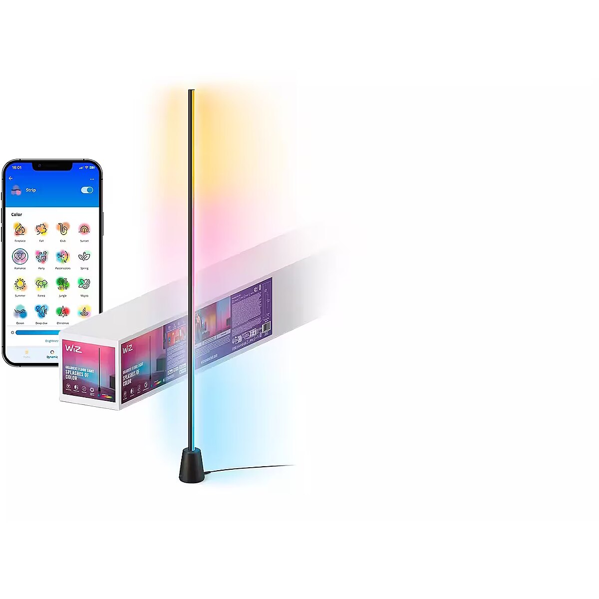 MediumDescription EN - WiZ Gradient Floor Light adds a multi-color lighting effect to your space, using RGBIC technology for smooth color transitions. Its minimalist design fits any corner, while smart features let you sync lighting with music or TV content.