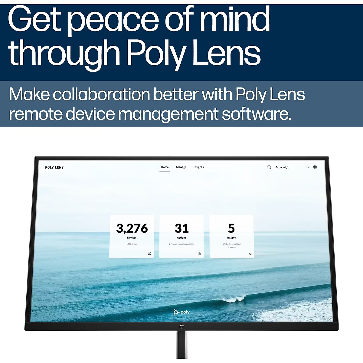 Zdalne zarządzanie urządzeniami Poly Lens zapewnia lepszy wgląd w przestrzeń pracy w całej organizacji. Dzięki licznym metodom zarządzania profesjonaliści IT mogą zdalnie i na własnych warunkach monitorować, aktualizować i rozwiązywać problemy z urządzeniami Poly. Wykorzystaj swoją kongurację w dużym pomieszczeniu