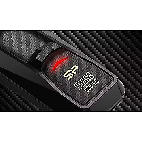 Blaze B50 offers large capacity choices up to 256 GB and introduces the SuperSpeed USB 3.1 Gen 1 interface. Utilizing USB 3.1 Gen 1 specifications, Blaze B50 is able to deliver ultra-fast transferring speeds up to R/W 240 MB/140 MB/sec (in case of 256 GB), by which professional users can easily and quickly edit or store large files including graphics and HD videos. Carbon fiber pattern X V-shaped LED indicator