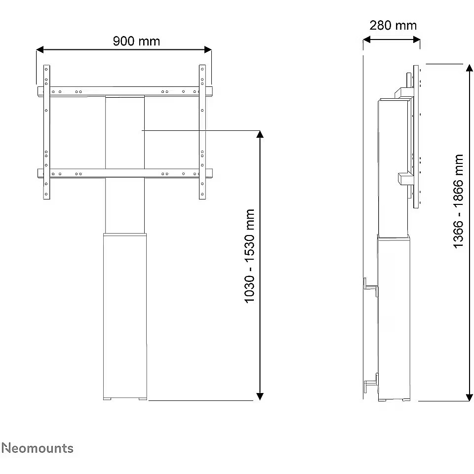 LongDesc - With the Neomounts PLASMA-W2250SILVER automatic height adjustable floor stand you place a large format flat screen on the floor and anchor it to the wall with the included wall mounts (7 cm distance). Get optimal positioning for both standing and seated audiences, in any application, in any part of your location. Perfect to use in a class room, boardroom, presentation room or public entrance.The PLASMA-W2250SILVER is suited for screens between 42"-100" and has a load capacity of 130 kg. The mount is suitable for screens with a VESA hole pattern of 200x200 to 800x600 mm. The mobile electric floor lift is automatically height adjustable over a height of 50 cm with a remote control. From the floor to the center the distance of the screen is variable from 105-155 cm. The position can be perfectly leveled with four adjustable feet under the central column.Cables can be guided at the back of the mount. The Neomounts PLASMA-W2250SILVER column comes in a silver color and all installation material is included with the product. Warranty: 5 year.