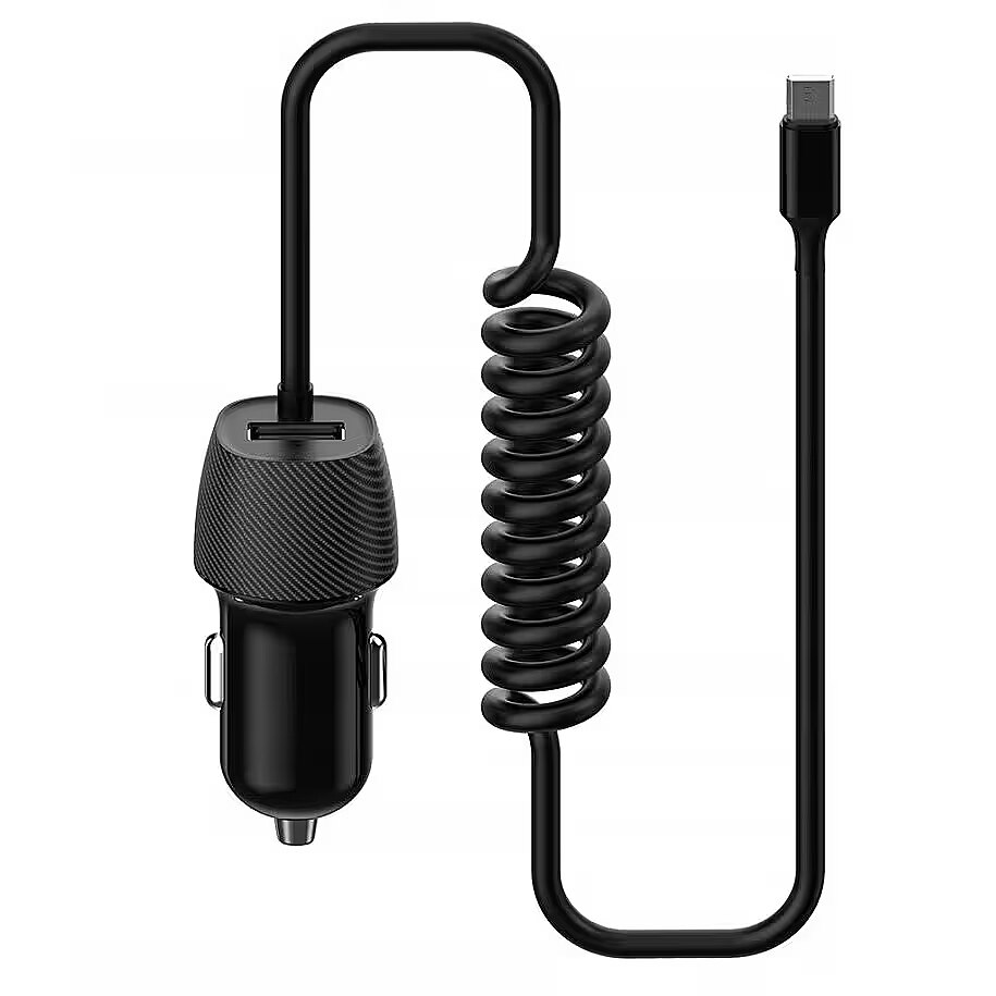 description_short_et - USB-A pesaga & Micro USB kaabliga vooluadapter autosse Lihtne kasutada – sisesta sigaretisüütajasse Laeb enamikku nutitelefone, GPS seadmeid jms Kompaktne disain & spetsiaalne spiraalkaabel