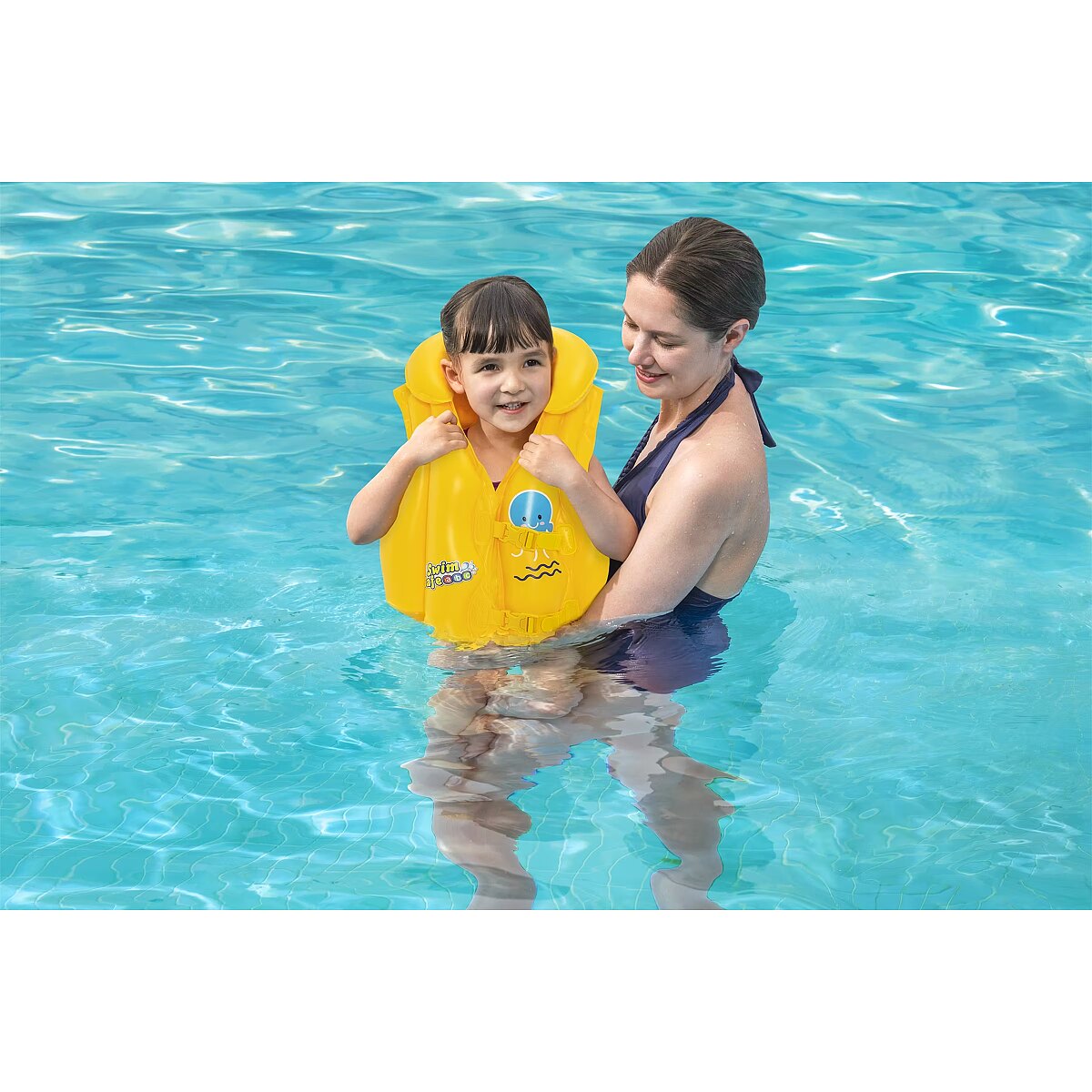 Description - Swim Safe Step C 51 x 46 cm swim training waistcoat Give your child extra freedom in the water and increased safety with the Swim Safe ABC WonderSplash inflatable swimming waistcoat. This inflatable swimming waistcoat - Step B is ideal for children aged 3-6 years. It includes 2 child-safe, quick-release buckles and 3 air chambers for safety and buoyancy, so your child can safely experience more water, even if they are not yet ready to swim independently. The Bestway Swim Safe ABC step-by-step programme starts with the floaters - with step A, designed for babies and toddlers who need maximum support. Swim waistcoats - step B are for toddlers who are starting to gain confidence but can't yet swim independently, and swim bands - step C are for children who are beginning to learn the basics of swimming. With its bright, eye-catching yellow colour and easy inflation, deflation and storage, the Swim Safe ABC WonderSplash swim waistcoat is easy to stow away for your child's next day of fun! Weight limit: 18-30 kg / 40-65 lbs Ideal for children who are starting to swim independently Nice graphics 2 adjustable child-safe buckles Sturdy inflatable construction provides buoyancy in the water