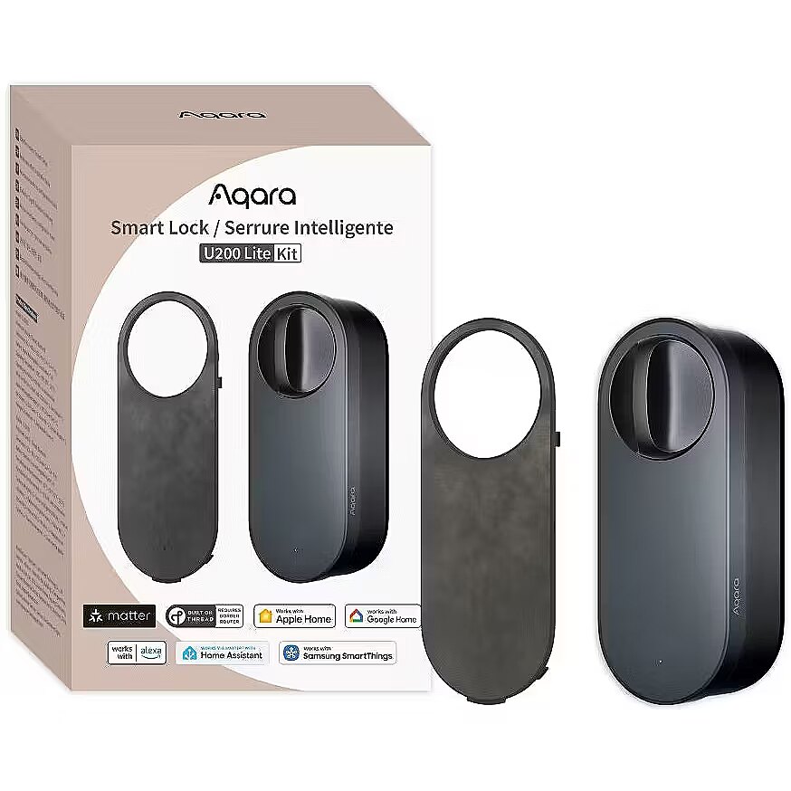 Description - Aqara Smart Lock U200 Lite Kit Upgrade your door with the Aqara Smart Lock U200 Lite Kit – a keyless, drill-free smart lock with Matter over Thread support, app and NFC unlocking, auto-lock, and easy installation. Matter over Thread Support: Enjoy a truly seamless smart home experience with the Aqara U200 Lite, which works out of the box with leading platforms like Apple Home, Google Home, Amazon Alexa, SmartThings, Home Assistant, Homey, and more*. Built on the low-power Thread protocol, it significantly reduces battery consumption, so you won’t need to change batteries often. Thanks to Thread’s self-healing mesh network, the lock communicates directly with nearby devices—ensuring fast, stable, and reliable performance. Flexible Unlock Methods: The Aqara U200 Lite supports Bluetooth proximity unlock via the Aqara app, decreasing the need for a mechanical key. You can touch your phone to the complimentary NFC Sticker Card to quickly launch the Aqara app or just open the app to access the unlock button on your phone. Additionally, the U200 Lite supports remote unlocking through the app*, which is convenient when you’re away from home. It’s also compatible with Siri and Alexa voice commands, allowing for seamless smart unlocking experiences*. Rechargeable Li-ion Battery: The U200 Lite is equipped with a 2000mAh rechargeable lithium battery that can last up to 6 months on a single charge, requiring minimal maintenance. It features a low battery alert function, giving users peace of mind during use. The device comes with a USB-C charging port for faster charging speeds. Auto Lock with Ease: Thanks to the built-in gyroscope, the U200 Lite alerts you with an audible reminder if you forget to close the door, and automatically locks the door once it’s closed.** Quiet Mode for Nighttime Use: Seamless smart home integration meets nighttime convenience with customisable speed settings. Choose between Quiet, Standard, and Fast modes to suit any time of day, ensuring peaceful operation when you need it most.*** Easy Installation & Great Compatibility: The lock easily fits over your existing door lock, requiring no complex installation or modifications. Installation is simple as long as your current cylinder has an emergency function***, allowing the lock to be mounted directly over the existing cylinder. The U200 Lite is compatible with Euro profile and select Scandi cylinders. Expanded Functionality: The Aqara U200 Lite features a pull spring function that automatically retracts the door latch upon unlocking, allowing you to open the door without touching it. This is ideal for situations where your hands are full or when you want improved hygiene. It’s especially useful for inward-opening doors or those without traditional handles, simplifying entry. And simply turn the knob approximately 30 to 60 degrees, and the lock will automatically lock or unlock.**** Complimentary Eco-Friendly Replaceable Cover: Stylish German eco-friendly replaceable cover (black cover with black lock/gray with white lock) that effortlessly change to match your sophisticated home décor. Natural, fashionable, and perfectly customizable for your refined living space.