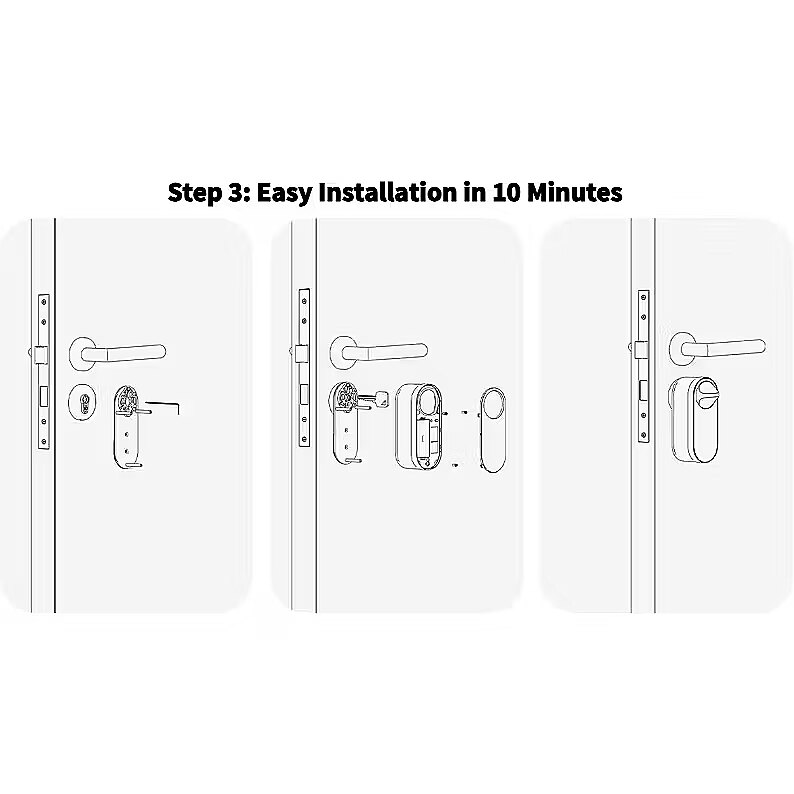Install in minutes—no drilling or cylinder replacement needed. Designed for Euro and Scandi locks with emergency function. Includes a replaceable, eco-friendly cover to match your home décor.