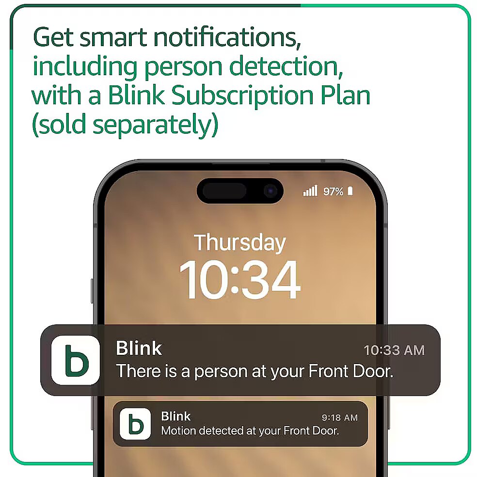 As part of a Blink Subscription Plan, get alerts whenever a person is detected and enjoy features like Blink Moments, or extended live view. Save and share clips