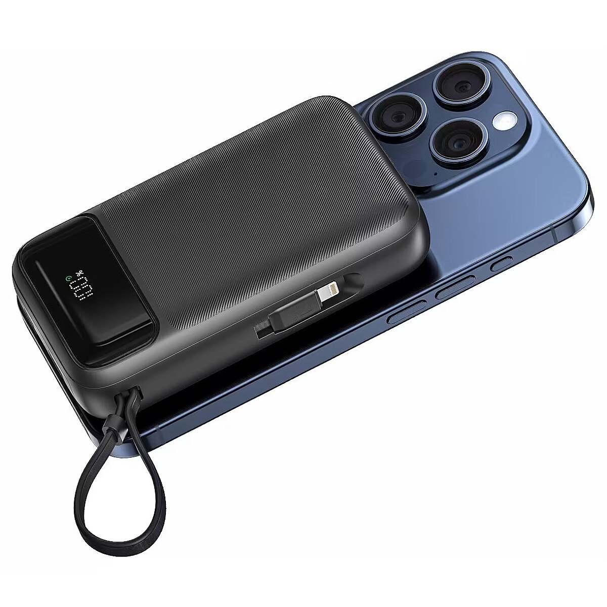 Swissten Power Bank 20000 mAh 20W with Built-In Cables USB-C And Lightning (MagSafe compatible)