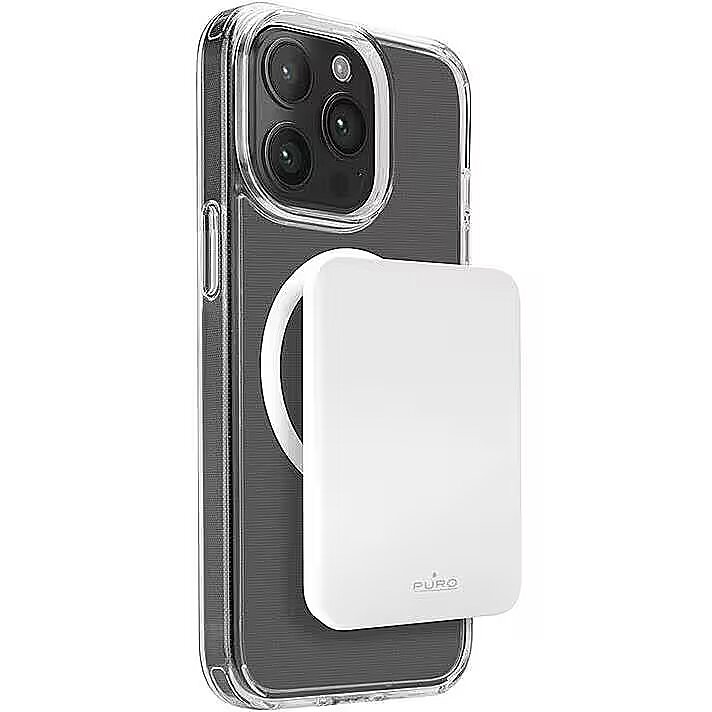 MediumDescription EN - The Puro Mini Power Mag power bank is compact and convenient to use, attaching instantly and allowing you to charge devices anytime, anywhere. Magnets align and hold it securely on your iPhone 12 series (and newer) devices, ensuring safe and reliable wireless charging. • USB-C input: 3A 15W