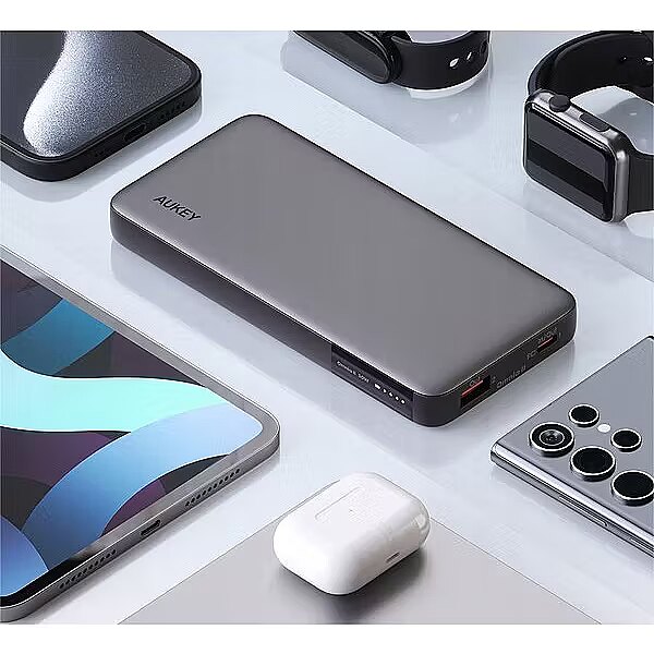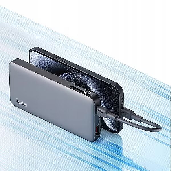 Description - Power bank AUKEY PB-Y41 Sprint X 10K 30W + kabel AUKEY Power Delivery USB C - USB C Quick Charge 3.0, Power Delivery 3.0 Moc 30W Możliwość ładowania 2 urządzeń jednocześnie Tryb ładowania niskim prądem (do słuchawek, smartwatchy) 2 gniazda USB (1xUSB-C oraz 1xUSB-A) Wskaźnik LED (Handy Digital LED IDisply) Aukey PB-Y41 to powerbank, który idealnie łączy niewielkie rozmiary ze znaczną mocą ładowania. Dzięki mocy 30W i pojemności 10 000 mAh stanowi doskonałe rozwiązanie dla osób, które potrzebują niezawodnego źródła energii na co dzień. Niezależnie od tego, czy ładujesz telefon, tablet czy małego laptopa, ten powerbank poradzi sobie z każdym zadaniem. Moc ładowania 30W: szybkie ładowanie smartfonów, tabletów i mniejszych laptopów. Pojemność 10 000 mAh: idealna do codziennego użytku. Tryb ładowania niskim natężeniem: idealny dla słuchawek, zegarków i innych małych urządzeń. Zabezpieczenia do podróży lotniczych: spełnia wymogi przewozu w kabinie samolotu. Wyświetlacz LED: precyzyjny odczyt poziomu naładowania w procentach. Wszechstronność portów: 2 porty USB-C i USB-A do ładowania różnych urządzeń. Moc 30W szybkość, której potrzebujesz Dzięki mocy ładowania 30W Aukey 30W 10000mAh jest w stanie naładować Twój telefon lub tablet w krótkim czasie. To idealne rozwiązanie dla osób, które cenią sobie szybkie i efektywne ładowanie. Co więcej, powerbank poradzi sobie również z ładowaniem mniejszych laptopów, takich jak Microsoft Surface to niezwykle praktyczne rozwiązanie w podróży. Pojemność, która wystarcza na cały dzień Powerbank oferuje pojemność 10 000 mAh, co pozwala na wielokrotne ładowanie smartfonów lub jedno pełne naładowanie tabletu. To optymalna pojemność, która świetnie sprawdza się w codziennym użytkowaniu bez obciążania Twojego bagażu. Wyświetlacz LED dla pełnej kontroli Precyzyjny wyświetlacz LED pokazuje poziom naładowania baterii w procentach. Zawsze wiesz, ile energii masz do dyspozycji i kiedy powerbank wymaga naładowania, co eliminuje niepotrzebny stres i zaskoczenia. Ładuj dwa urządzenia jednocześnie AUKEY umożliwia ładowanie dwóch urządzeń naraz, dzięki jednemu portowi USB-A i jednemu USB-C. Niezależnie od tego, czy to smartfon, tablet, czy inne akcesoria, możesz je ładować równocześnie, co oszczędza Twój czas i sprawia, że zawsze jesteś gotów do działania. Uniwersalność portów ładowanie dla każdego Powerbank jest wyposażony w dwa porty: USB-C i USB-A, co pozwala na ładowanie różnorodnych urządzeń. USB-C obsługuje technologię Power Delivery, natomiast USB-A świetnie sprawdza się do ładowania bardziej uniwersalnych urządzeń. Tryb niskiego natężenia Aukey zadbało o możliwość ładowania małych urządzeń, takich jak słuchawki Bluetooth czy smartwatche. Dzięki trybowi ładowania niskim natężeniem zapewniasz bezpieczeństwo delikatnym urządzeniom i optymalny proces ich ładowania. Bezpieczeństwo w podróży Powerbank spełnia wszystkie wymagania dotyczące przewozu w kabinie samolotu, co czyni go idealnym towarzyszem podróży. Dzięki temu możesz bez obaw zabrać go na pokład i korzystać z energii w każdej sytuacji, niezależnie od miejsca, w którym się znajdujesz.
