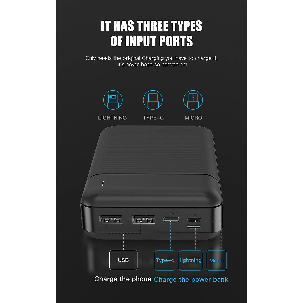 Емкость: 30 000 мАчВход MicroUSB и USB-C2 выхода USB и LightningРазмеры: 157×80×30 ммВес: 662 гКабель microUSB в комплекте