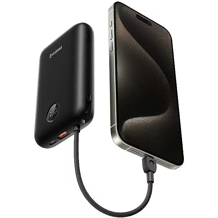 Integrated USB-C and Lightning cables for convenient charging without additional accessories.