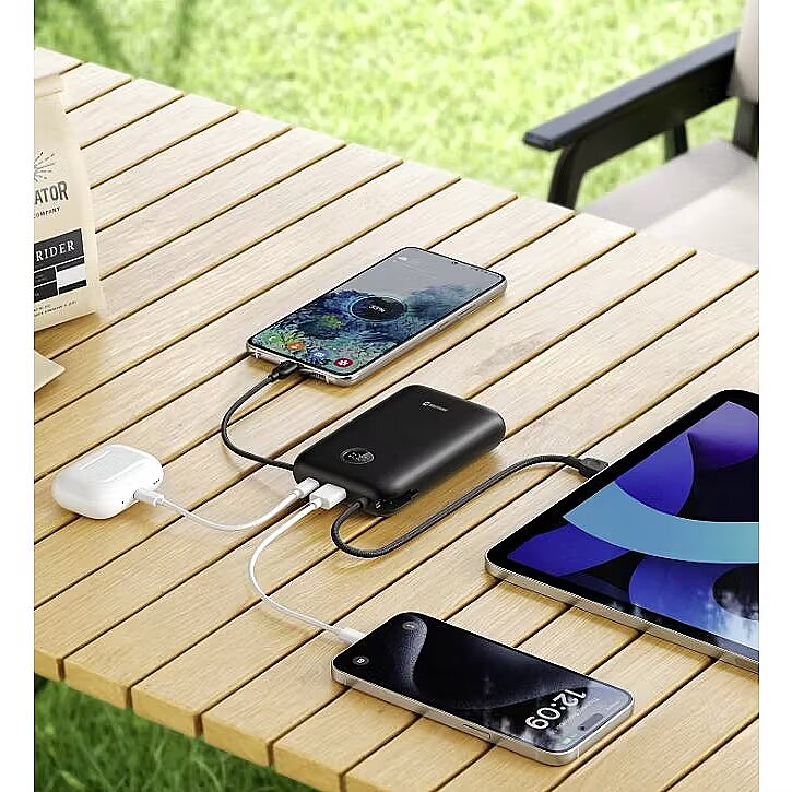 Этот внешний аккумулятор обеспечивает выходную мощность до 35 Вт через порт USB-C и кабель, что позволяет быстро заряжать смартфоны, планшеты или небольшие ноутбуки. Порт USB-A мощностью 22,5 Вт также доступен для дополнительных устройств. Благодаря высокой емкости 30 000 мА·ч вы можете быть уверены, что у вас будет достаточно энергии на несколько дней, независимо от того, путешествуете ли вы, работаете или находитесь в отпуске.