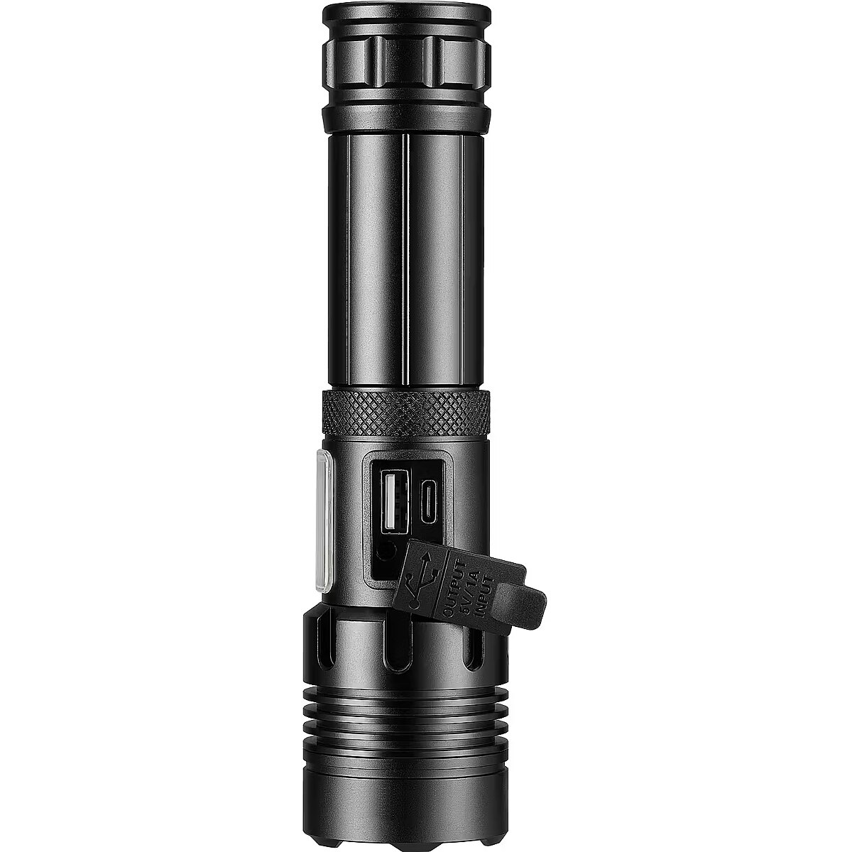 LongDesc - The Sandberg Survivor 7in1 Torch Powerbank 5000 is perfect for camping or a good hike in nature. It offers a wide range of useful features in one device: Powerful LED torch with multiple brightness levels and zoom lens, side lantern with multiple functions and red light option. The built-in rechargeable battery works both as a battery for the light, but can also be used as a powerbank to charge a smartphone via the built-in USB connector. Robustly built in an IPx4 certified aluminium design, so you can safely carry it with you in harsh conditions. Additionally, the torch can be used as an emergency hammer via the crown at the top.