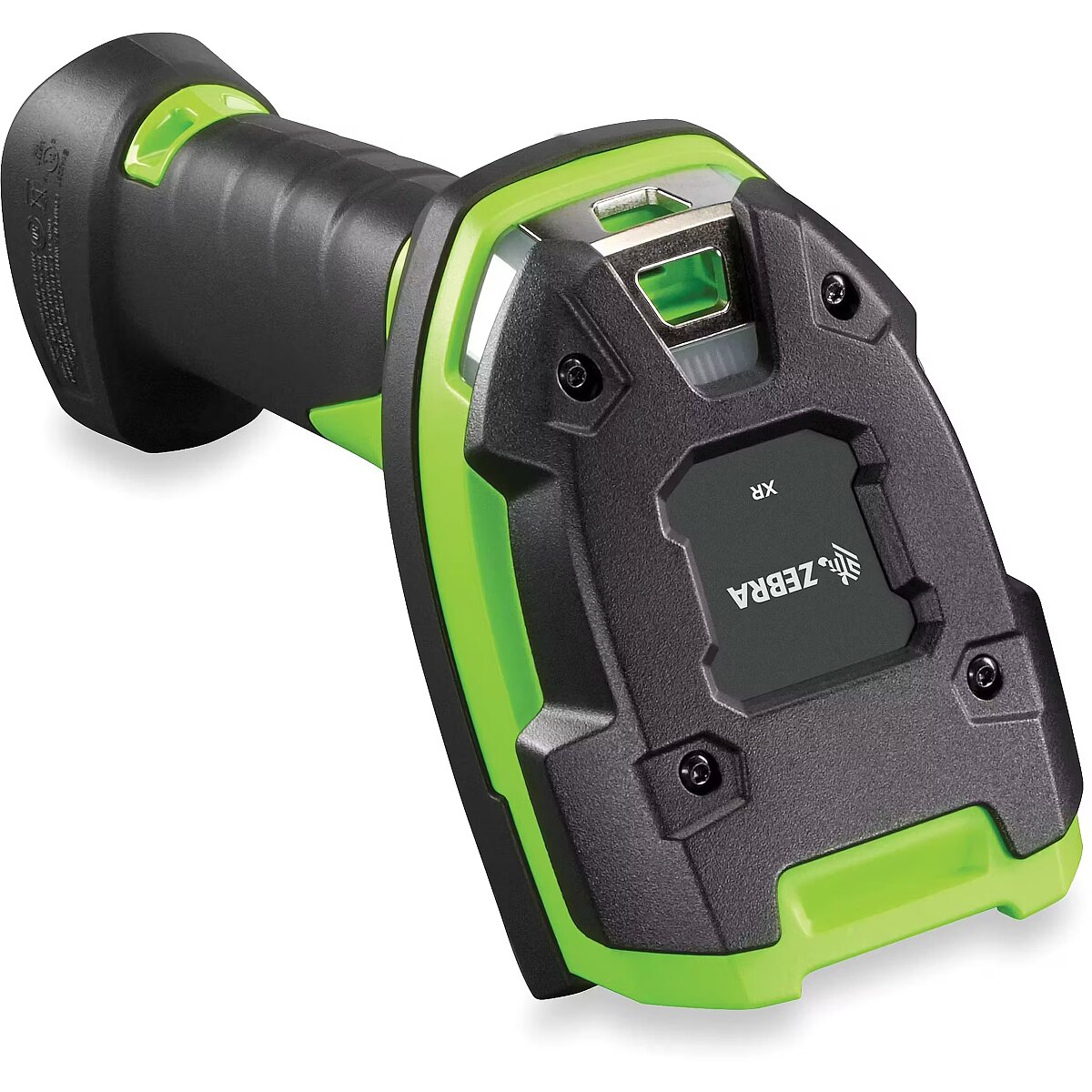 LongSummaryDescription - Zebra DS3608-XR. Type: Handheld bar code reader, Scanner type: 1D/2D, Sensor type: Laser. Connectivity technology: Wired, Standard interfaces: Keyboard wedge, RS-232, USB. Product colour: Black, Green, International Protection (IP) code: IP67, Protection features: Water resistant. Power source type: Battery, Battery technology: Lithium-Ion (Li-Ion), Battery capacity: 3100 mAh. Weight: 308 g, Width: 132 mm, Depth: 76 mm
