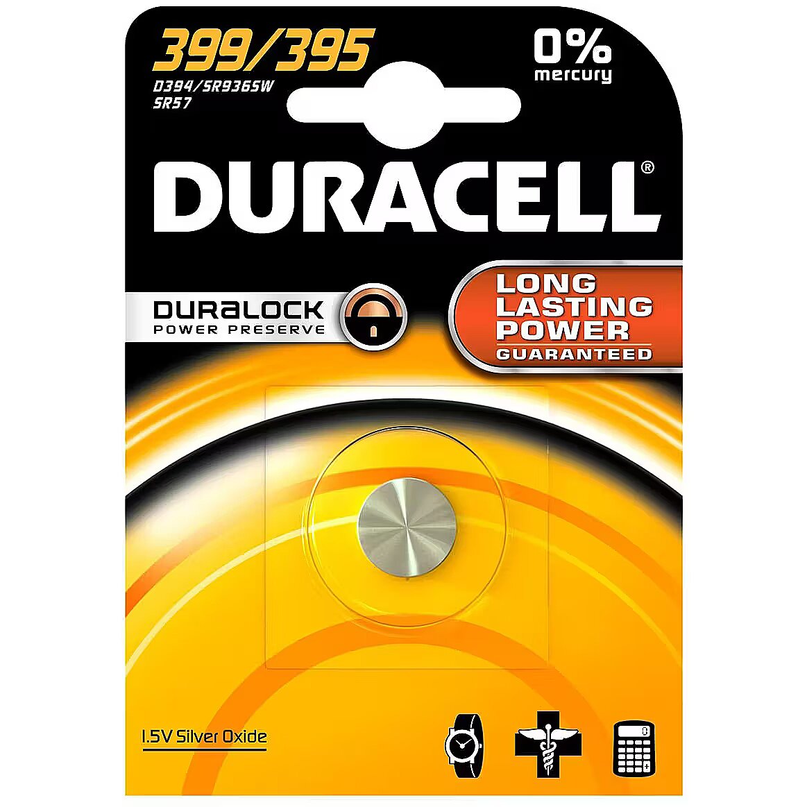 LongSummaryDescription - Duracell 399/395. Battery type: Single-use battery, Battery size(s): SR57, Battery technology: Silver-Oxide (S). Battery form factor: Button/coin