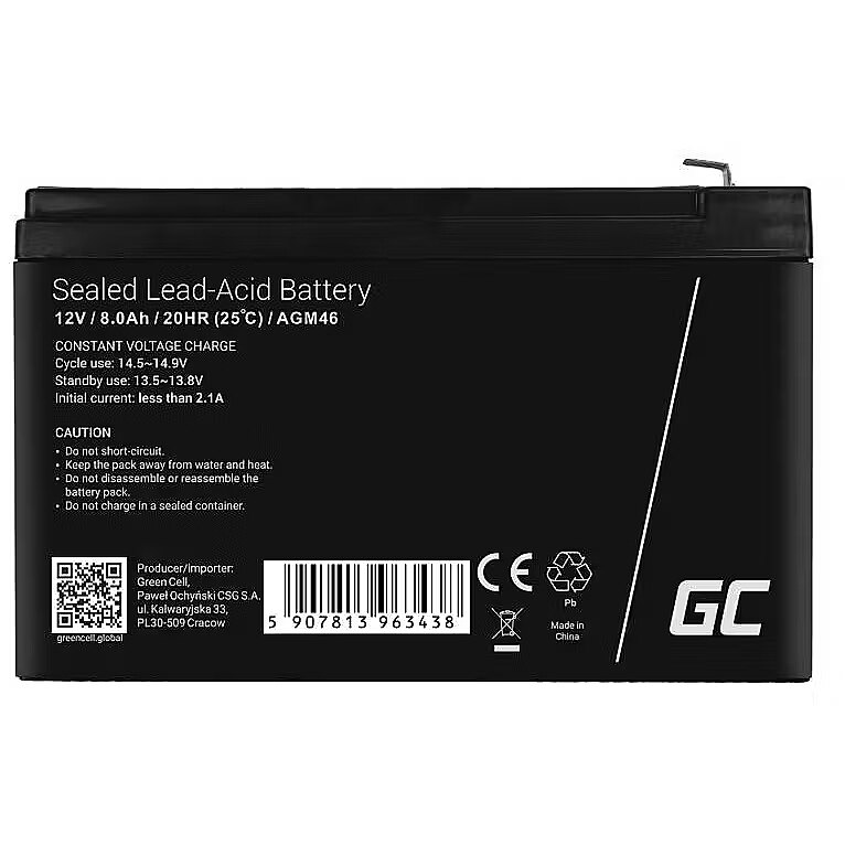 Description - Green Cell AGM VRLA 12V 8Ah bezobsługowy akumulator do zasilaczy awaryjnych UPS systemów zasilania awaryjnego UPS