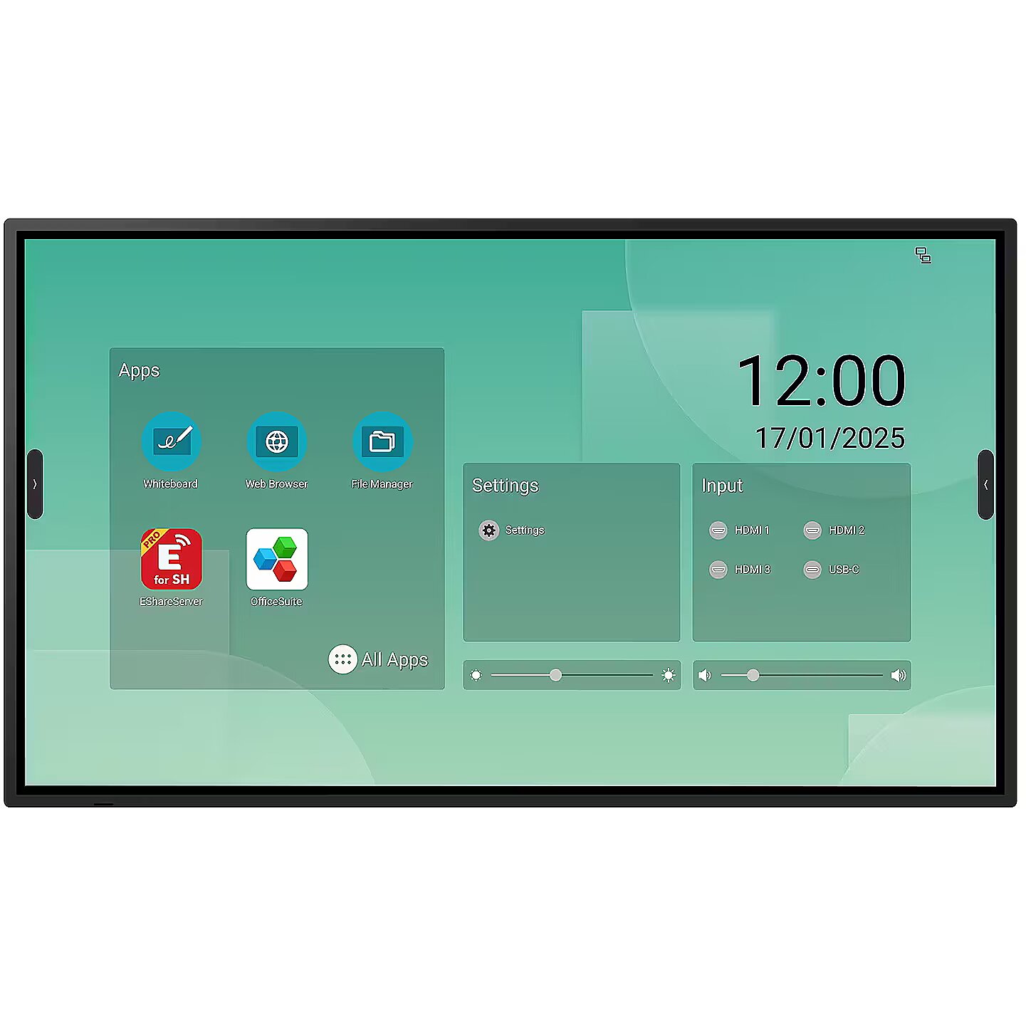 LongDesc - Multi-purpose for interactive engagementsFor best-in-class touch performance and value, the Sharp LM series commands feature-rich professional capabilities for small meeting spaces and interactive signage applications. An integrated System on Chip (SoC) with Android 14 CTS-compliant Operating System offers the most up to date features and security for seamless out-of-the-box collaboration.Boosting creativity in group collaboration, the Sharp LM series features intuitive Pen-on-Paper writing, a built-in whiteboard, annotation overlay mode and Windows Ink support. Using the on-board EShare app, content can be wirelessly shared from any personal device to the display without the need for apps or dongles. A single USB-C cable transmits data, video/audio output and power delivery between notebook and display for the simplest and seamless BYOD workflows.With its 4-sided uniform slim bezel design, the Sharp LM series supports installations in both landscape and portrait as well as tilted desk. Dedicated features including hide side bars, application lock and a built-in web browser make the Sharp LM series the perfect display for budget-driven interactive signage applications.