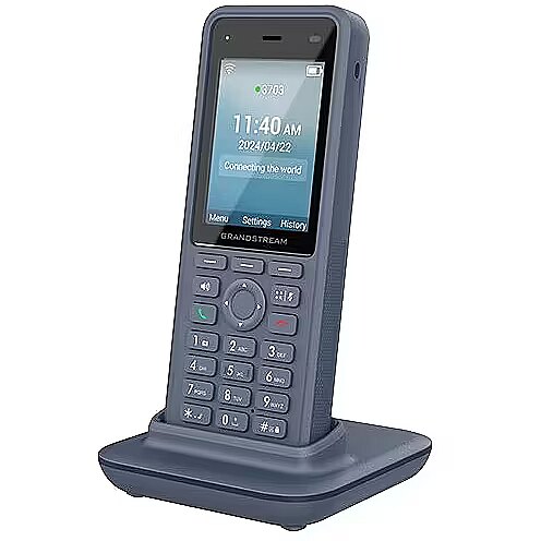 Other features - Funkcjonalność: Dwupasmowy moduł Wi-Fi 6 z wysokosprawną anteną i zaawansowaną obsługą funkcji roamingu. Trzy konta SIP, trzy linie, cztery konferencje. Głos w jakości HD oraz dwa mikrofony z technologią AEC (Echo Cancellation) i tłumienia szumów, a także redukcja hałasów wspomagana SI. Zintegrowany moduł Bluetooth do podłączania zestawów słuchawkowych. Port USB Type-C (szybkie ładowanie). Akumulator 3000 mAh: 10 godzin rozmów, 240 godzin w trybie czuwania. Konfigurowalny przycisk funkcji naciśnij, aby mówić. Dostępne funkcje alarmów: naciśnięcie przycisku, upadek, brak ruchu, bieganie, dźwięki otoczenia. Stopień ochrony IP67 zabezpieczający przed wnikaniem wody i pyłu. Odporność na środki chemiczne używane do czyszczenia. Obudowa z powłoką antybakteryjną.