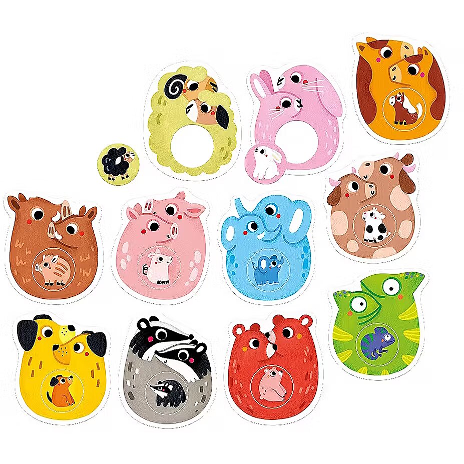 W zestawie znajdziecie 11 duĹźych dwuelementowych ukĹadanek z dokĹadanymi kĂłĹeczkami - naleĹźy dopasowaÄ je do wĹaĹciwych dziurek. Urocze ilustracje przedstawiajÄ rodzicĂłw i maluchy. Taka zabawa to sposĂłb, aby na wesoĹo doskonaliÄ sprawnoĹÄ dĹoni, bystre oko i wyobraĹşniÄ. Puzzle Ĺwietnie sprawdzÄ siÄ jako pierwsze ukĹadanki juĹź dla roczniakĂłw.