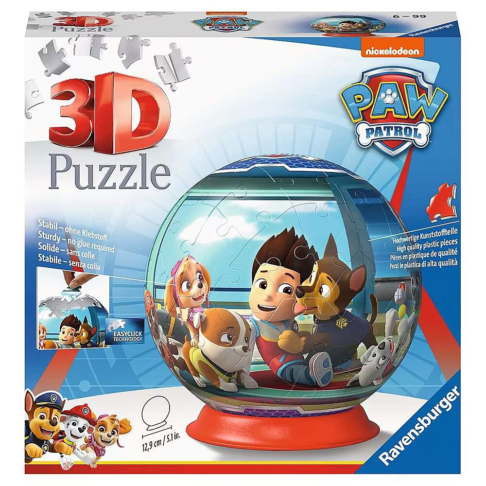 Description - Twórz wyjątkowe konstrukcje 3D z puzzlami 3D od firmy Ravensburger! Odkryj nowy, trójwymiarowy sposób układania puzzli. Elementy tych puzzli zostały wykonane ze sztywnego tworzywa sztucznego, które pozwala na utrzymanie się konstrukcji bez użycia kleju. Ułożone przedmioty nie rozwarstwiają się, a puzzle mocno trzymają się siebie. Materiał użyty do produkcji klocków jest łatwy w czyszczeniu, wystarczy użyć wilgotnej szmatki. Kula z wzorem Psiego Patrolu to coś, co każdy fan serii powinien mieć w domu. Konstrukcja z puzzli 3D łączy przyjemne z pożytecznym rozwija wyobraźnię przestrzenną, a po złożeniu może posłużyć jako ozdoba. W zestawie oprócz puzzli znajdziesz również podstawkę.