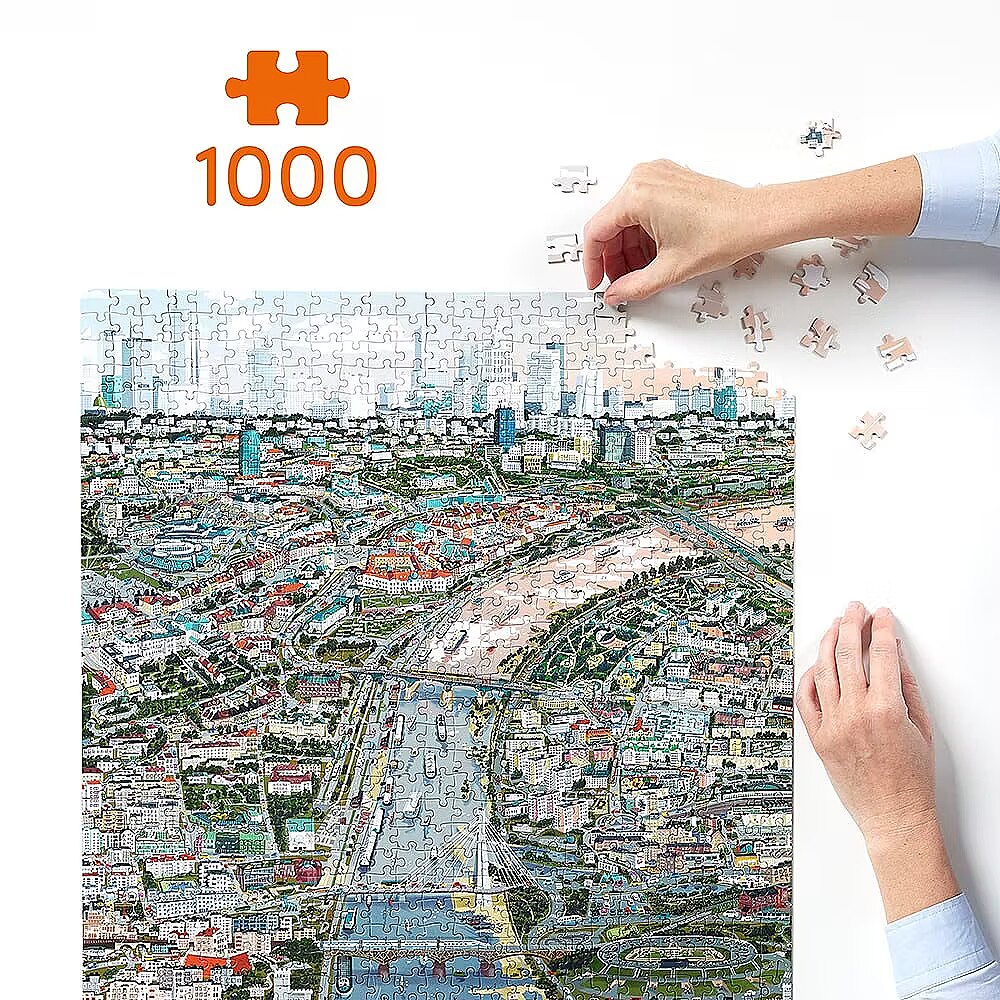 Description - The capital of Poland won the European Best Destination 2023 competition, and we understand it perfectly. Direction to Warsaw! Are you ready for another puzzle challenge and a journey through the illustrated city with your finger and eyes? Puzzlove CzuCzu Miasto Warszawa consists of as many as 1,000 elements. The finished illustration measures 48 x 68 cm. Put together puzzles the way you like: in your favorite company: with family, friends or alone for relaxation and rest, for long evenings or in one afternoon, to exercise the gray cells, train patience and perceptiveness (we suggest: find King Sigismund III Vasa not only on the monument!, the Mermaid and the Basilisk), for love of Warsaw and city trips, for the love of puzzles, to be able to hang the arranged illustration on the wall and enjoy the view. Puzzlove Miasto Warszawa is a perfect idea for a beautiful gift for adults, children, Warsaw residents, fans of the capital and all puzzle lovers.