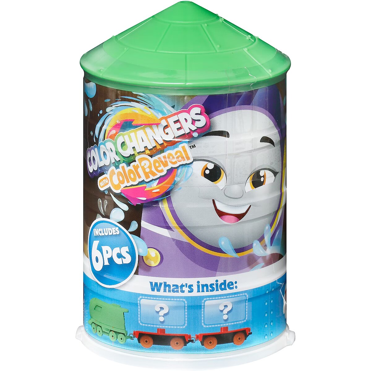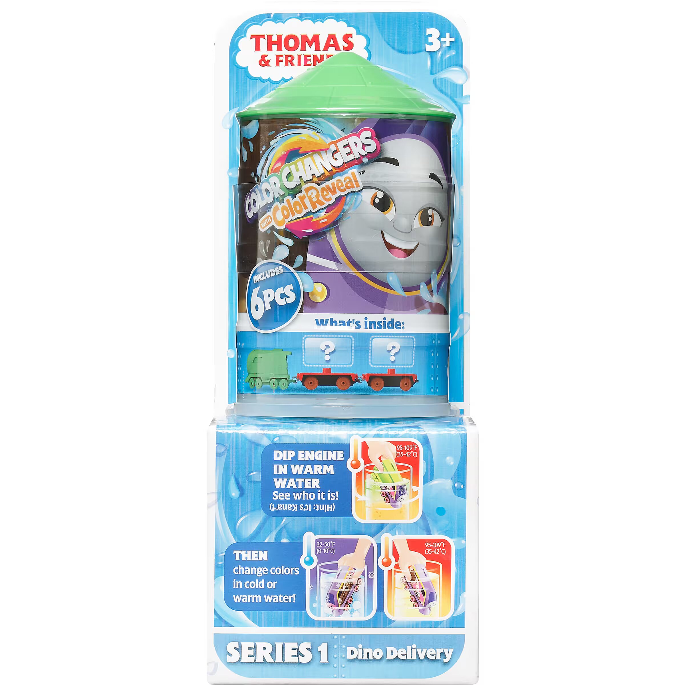 LongDesc - Preschool kids can unbox hours of exciting railway play with these Thomas & Friends Colour Reveal & Surprise toy trains from Fisher-Price. Kids can unbox and dunk the mystery engine in warm water to reveal who it is! Then discover hidden decorations on the engine by changing the water temperature from warm to icy cold (and back again). Each engine also includes 2 cargo cars and 2 surprise cargo pieces for kids to unwrap, load up, and send racing around with the engine. Compatible with any Thomas & Friends track (Track sets sold separately & subject to availability.) Colours and decorations may vary.