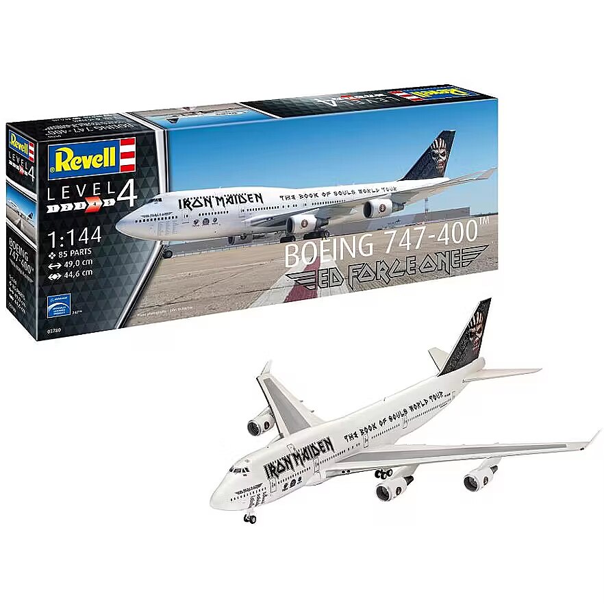 Description - Boeing 747-400 Ed Force One the legendary Iron Maiden aircraft Experience the fascination of The Book of Souls World Tour 2016 with a unique model of the Boeing 747-400 Ed Force One. This finely detailed model brings the impressive presence of the original aircraft into your home. With highly detailed parts and realistic design, this kit provides an immersive building experience for model enthusiasts and Iron Maiden fans alike. The meticulously designed CF-6 engines, detailed undercarriage recesses and underside of the wings make this model an unparalleled collector's item. Four CF-6 engines with meticulously detailed components Highly detailed undercarriage recesses and underside of wings Detailed undercarriage that can be retracted or extended Realistic decals for an authentic representation of Ed Force One Exclusive special edition with official Iron Maiden licence The Boeing 747-400 Ed Force One served as the concert plane for heavy metal band Iron Maiden during their 2016 world tour The Book of Souls, piloted by vocalist Bruce Dickinson and took the band and its crew safely to more than 35 countries. Ed Force One is not just an aircraft, but a symbol of the band's epic journeys and worldwide bond with their fans. This model celebrates the band's remarkable history and unparalleled touring.