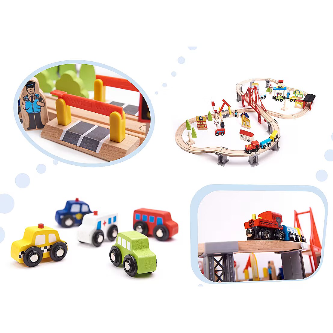 title_ru - RoGer Деревяный Игрушечный Поезд с рельсами и аксессуарами 70дет.