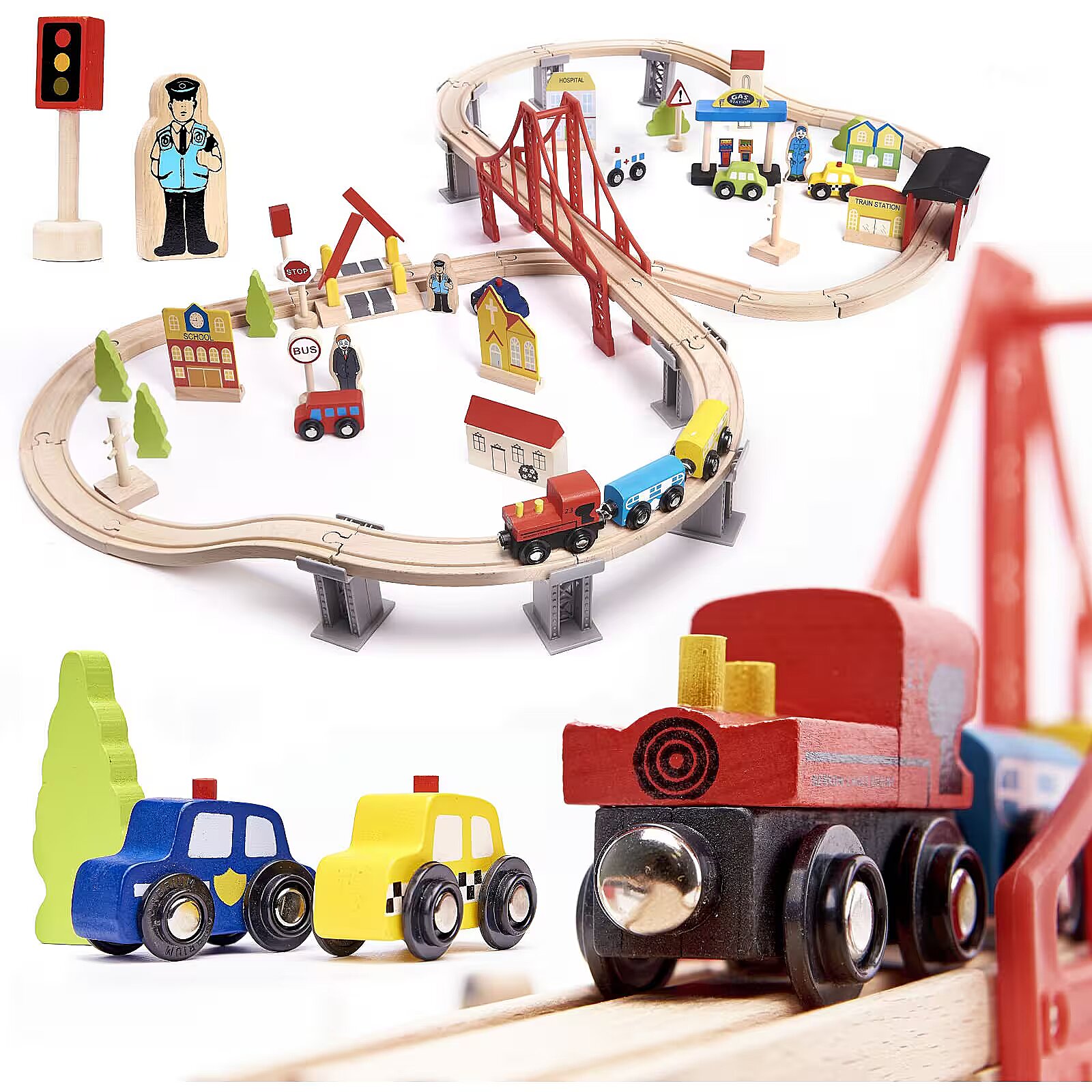 description_en - The wooden train/car track is quite a treat for the little ones! Colorful elements from which extraordinary landscapes are created. Rich set - as many as 70 elements! - gives virtually unlimited possibilities of creation.