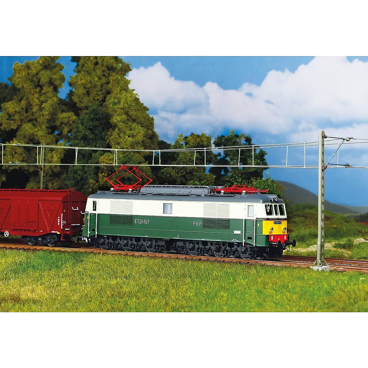 Description - Współczesny model PKP ET 21 z pewnością rozpali serca wielu przyjaciół kolei, ponieważ lokomotywa towarowa jest jednym z kamieni milowych zmian trakcyjnych w Polsce. PIKO oddaje hołd tej historycznej wartości w modelu w skali H0. Rezultatem jest model, który doskonale oddaje charakter prototypu. Typowe atrybuty modeli PIKO Expert można znaleźć również w ET 21: drobno grawerowane i niezwykle plastikowe kratki wentylatorów, precyzyjnie ażurowe panele wózków i niezwykle filigranowe wyposażenie dachu. Cechy te uzupełnia absolutnie prototypowy schemat malowania i równie dokładny druk. Model napędzany jest pięciobiegunowym silnikiem PIKO z dwoma kołami zamachowymi. Modernizacja cyfrowego dekodera lub dźwięku pojazdu jest łatwa dzięki interfejsowi PluX22 i odpowiedniej przestrzeni montażowej. Prawie obowiązkowe jest oczywiście oświetlenie LED w kolorze czerwonym i białym, które zmienia się w zależności od kierunku jazdy.