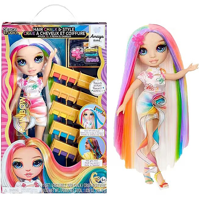 LongSummaryDescription - Rainbow High Hair Chalk & Style Doll- Amaya (Rainbow). Doll type: Fashion doll, Doll's gender: Female, Recommended age (min): 4 yr(s), Suggested gender: Boy/Girl. Height: 280 mm. Material: Plastic, Textile, Product colour: Multicolour