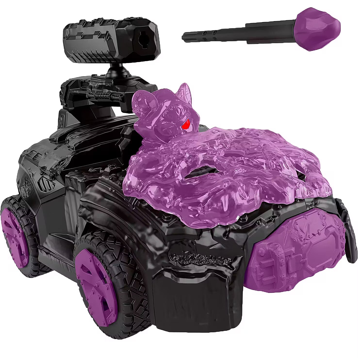 LongDesc - The Shadow Crashmobile looks impressive with its purple shimmering tank. The MINI CREATURE cruises through ELDRADOR® with its Crashmobile like a boss. It simply rams anyone who gets in its way. Or it shoots them with its firearm. Run for it!These fast-paced Crashmobiles are conquering the world of ELDRADOR®! The vehicles with a friction engine are equipped with a revolving firearm and spread fear and terror throughout the Five Worlds. Each Crashmobile is driven by an exclusive MINI CREATURE figure. The armor on the front of the vehicle is the best protection when it comes to driving through ELDRADOR®. Cool action vehicles for the next MINI CREATURES attack on ELDRADOR®! Equipped with a friction motor, the MINIS jet through the five worlds as fast as little rockets. Thanks to the revolving shooting function, they are well equipped for any battle. Available in five colors!