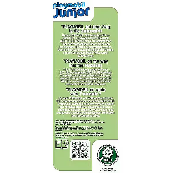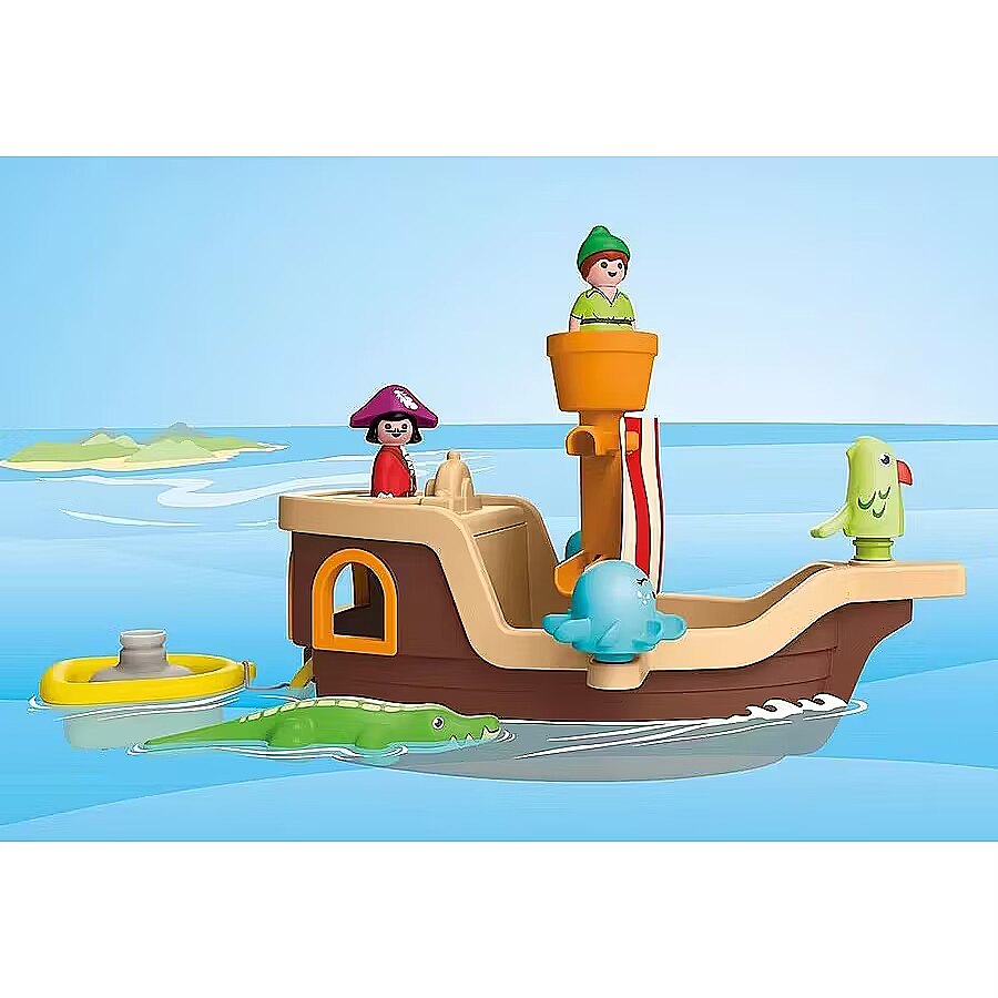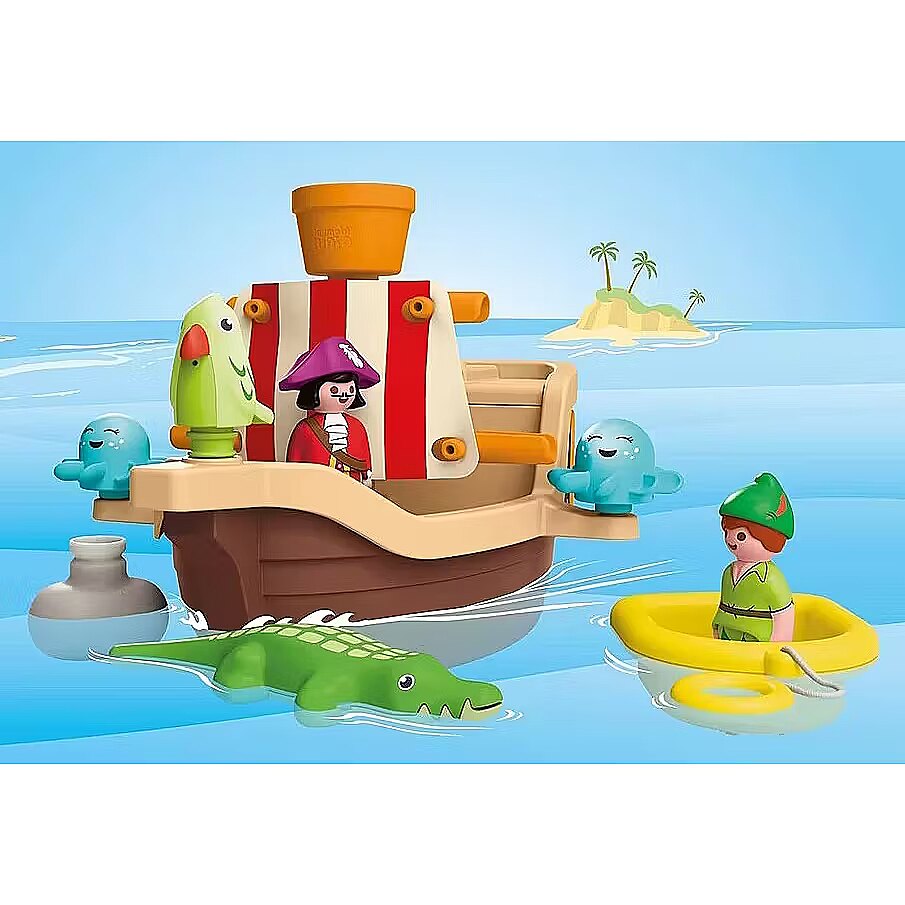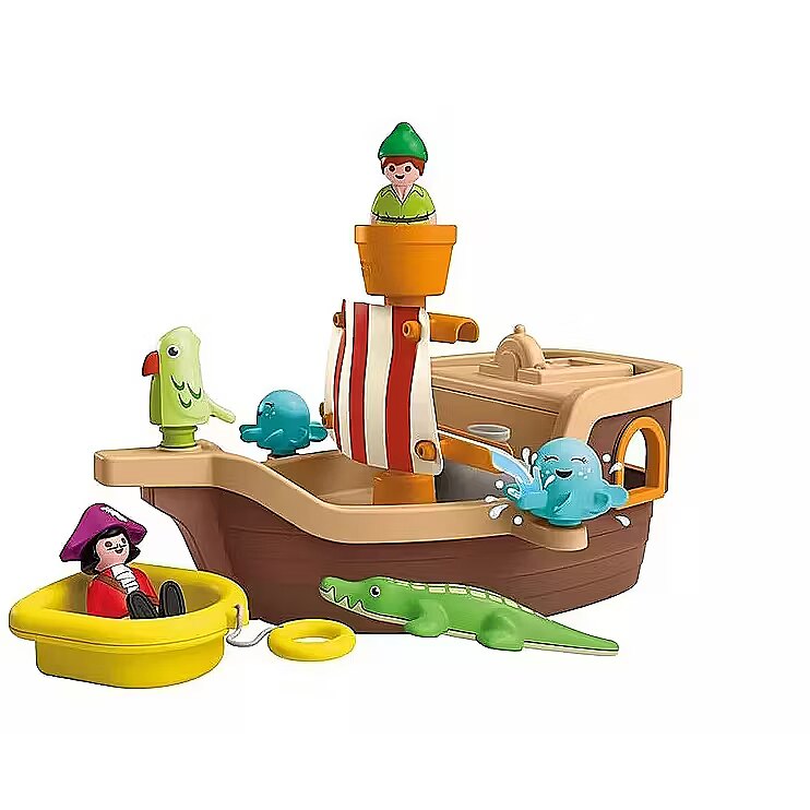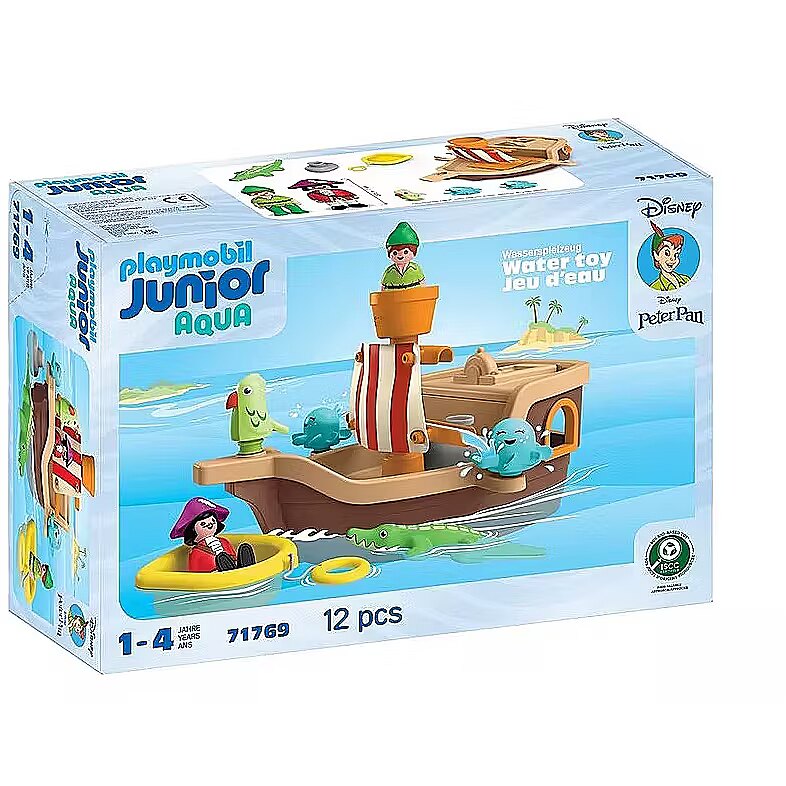 Description - Kąpiel staje się niepowtarzalną przygodą z Piotrusiem Panen Disneya. Duży statek piracki wyposażony jest w wiele ciekawych funkcji do odkrycia podczas zabawy w wodzie. Która z nich najbardziej spodoba się Twojemu dziecku? Dzięki zestawowi inspirowanemu Disneyem kąpiel staje się wspaniałą wodną zabawą. Uważaj, duży statek piracki wypływa w morze. Kto znajduje się na jego pokładzie? Kapitan Hak zajął miejsce w bocianim gnieździe i bacznie obserwuje otoczenie. Czy widzisz co sie dzieje? Dwie ośmiornice zakradły się na burtę statku. Kto złapie napełniony wodą ponton i obleje kapitana Haka? Woda spływa po maszcie, a dwaj przyjaciele zaczynają coraz szybciej wirować. Wspaniała zabawa! Zabawny krokodyl wskakuje do pontonu, który jest zaczepiony do statku. A gdzie podział się Piotruś Pan? Czy stoi za sterem statku? Ośmiornice i papuga wyposażone są w funkcję pryskiwania wodą. Kto pierwszy weźmie mały prysznic? Zestaw oferuje różnorodność zabawy podczas kąpieli w wannie: rozpryskiwanie i nalewanie wody, wyprawę statkiem - puść wodze fantazji. A najlepsze pozostaje na zakończenie: Po zabawie w wannie wszystkie części można schować wewnątrz statku. Cechy szczególne produktu: Duży statek z wieloma funkcjami Dwie ośmiornice i jedna papuga z funkcją pryskania wodą i przyczepiania Maszt z opcją wodną do poruszania ośmiornic Zwierzęta z funkcją pryskania wodą można łatwo czyścić Zawiera ponton, spryskiwacz, krokodyla, Piotrusia Pana i kapitana Haka Kabina z miejcem do przechowywania Wymiary statku: ok. 30 x 26 x 18,5 cm (D x S x W) PLAYMOBIL JUNIOR - zaprojektowany dla najmłodszych fanów PLAYMOBIL! Idealny dla dziecięcych dłoni i wczesnych odkryć przyjaznym maluchom. Z wieloma pomysłowymi funkcjami, takimi jak układanie, dopasowywanie lub sortowanie. Pozwól swojemu dziecku w wieku od 1 roku życia do 4 lat postawić pierwsze kroki w wielkim świecie PLAYMOBIL z PLAYMOBIL JUNIOR! PLAYMOBIL JUNIOR dba o bezpieczeństwo Twojego dziecka: seria PLAYMOBIL JUNIOR jest produkowana w UE, nie zawiera BPA i została zaprojektowana bez małych części, które mogłyby zostać połknięte. Wszystkie zestawy do zabawy z serii PLAYMOBIL JUNIOR są wykonane w ponad 90% z tworzyw sztucznych pochodzenia roślinnego, które można monitorować w materiałach pozostałych po produkcji żywności lub papieru, przyjmując system bilansu masy, stosowany w gospodarce o obiegu zamkniętym i zgodnie ze standardem ISCC 208. Tworzywa te są wytrzymałe i łatwe w pielęgnacji. Do produkcji opakowań wykorzystywany jest karton pochodzący w co najmniej 90% i papier pochodzący w 100% z recyklingu, a jeśli to możliwe unikany jest plastik. PLAYMOBIL JUNIOR - odkrywaj świat w sposób przyjazny maluchom!